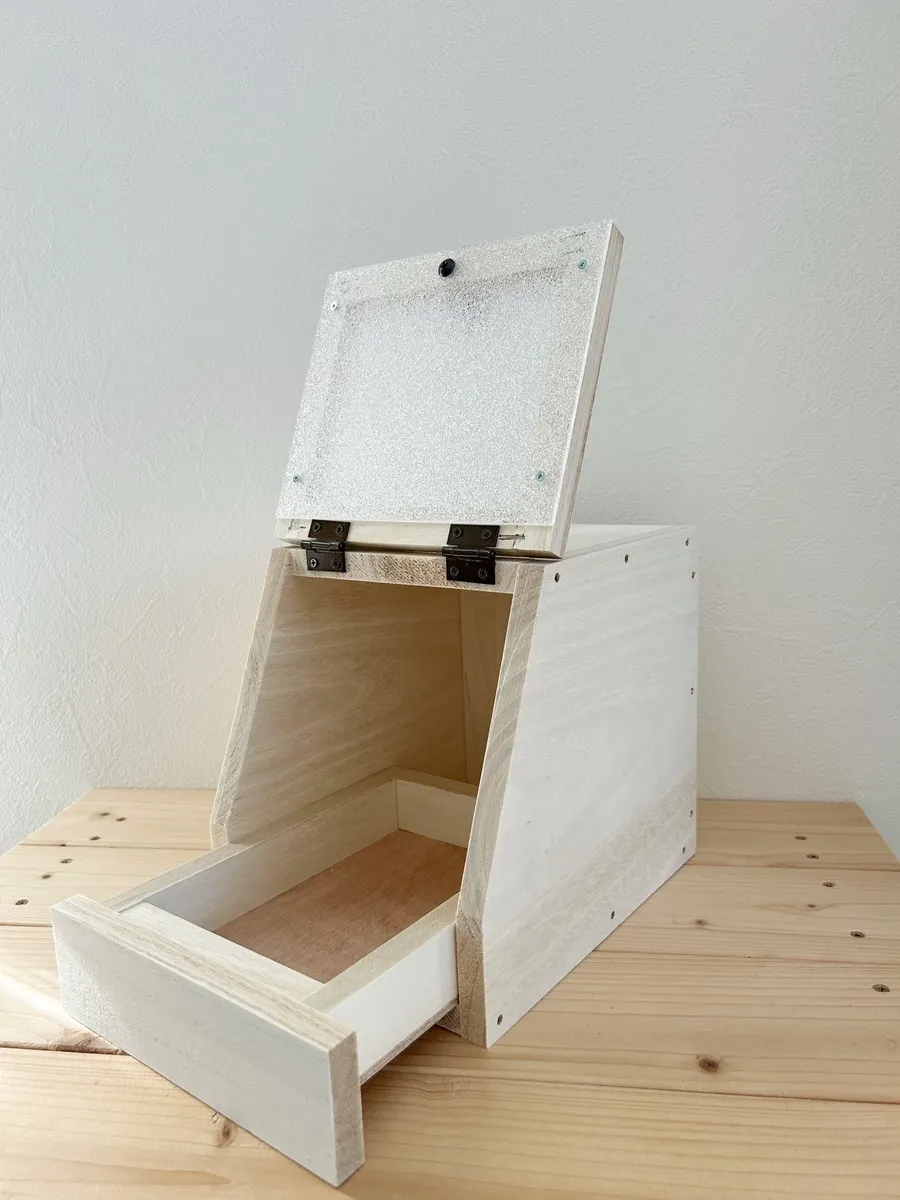 トップ > ワークショップ > 棚・収納 > HL.10 フラップ扉収納BOX ③ みー 2026/02/10 19:14 HL.10 フラップ扉収納BOX ③ またまたストアオリジナルのWSに参加しました😌とはいっても私の投稿はほとんどが時差投稿なので作ったのは結構前ですが😅 前回、前々回で2つ作って、今回が最後の1つ! 今回は作ってあった他の色の同作品と馴染むようにホワイト×無塗装にしてみました 確かホワイトはピュアホワイト色だったと思います🤔 内側はこんな感じです 3つ並べるとこんな風になります 単体でも可愛いけど並べると可愛さが増しました☺️ いいね 共有する 共有する X LINE リンクをコピー コメントする 7 件の返信 (新着順) ミュートしたユーザーの投稿です。 投稿を表示 てんこ 2026/02/11 21:40 ナチュラルの3色が、素敵💗 スライドできて、便利ですね〜 無塗装、いいですね〜 いいね 返信する ミュートしたユーザーの投稿です。 投稿を表示 みー 2026/02/12 07:29 てんこ ありがとうございます☺️ 1つ目をピンクにしたので2つ目はどうしよう、3つ目は白にしようって流れでした😉見た目だけじゃなく機能性もちゃんとある作品でお気に入りです✨ いいね 返信する ミュートしたユーザーの投稿です。 投稿を表示 Mako 2026/02/11 11:13 色の組み合わせが素敵です✨ いいね 返信する ミュートしたユーザーの投稿です。 投稿を表示 みー 2026/02/11 20:51 Mako ありがとうございます😊 ついつい並べるイメージで3つ作っちゃいました😆 いいね 返信する ミュートしたユーザーの投稿です。 投稿を表示 とぴ 2026/02/11 08:58 これは可愛い〜しか出てきませんね🩷🩵🤍 ナチュラルティストで素敵🫶✨ いいね 返信する ミュートしたユーザーの投稿です。 投稿を表示 みー 2026/02/11 09:40 とぴ ありがとうございます😊 可愛いですよね✨中が見えないのもいいなって思う作品でした☺️ いいね 返信する ミュートしたユーザーの投稿です。 投稿を表示 くままん 2026/02/10 23:33 どの色も可愛い💕黒いつまみがお鼻に見えて、お顔と耳を🐶😺つけたくなります😆 いいね 返信する ミュートしたユーザーの投稿です。 投稿を表示 みー 2026/02/11 09:39 くままん ありがとうございます😄 確かに❣️黒色の取手が鼻に見えますね😁 いいね 返信する ミュートしたユーザーの投稿です。 投稿を表示 みっきい 2026/02/10 23:02 3つ並ぶととても可愛いですね。色合いが素敵です🎶 いいね 返信する ミュートしたユーザーの投稿です。 投稿を表示 みー 2026/02/11 09:32 みっきい ありがとうございます😊 店頭見本を見て、ナチュラルな雰囲気がピッタリかなぁと思ったので可愛い系の色にしてみました✨ いいね 返信する ミュートしたユーザーの投稿です。 投稿を表示 べるん 2026/02/10 22:19 お色違いで並んでいると、より可愛いくなりますね💞 いいね 返信する ミュートしたユーザーの投稿です。 投稿を表示 みー 2026/02/11 09:30 べるん ありがとうございます☺️ 置き場所問題が解決していないのに並べると可愛いかなと思って勢いで3つ作っちゃいました😆 いいね 返信する ミュートしたユーザーの投稿です。 投稿を表示 やこ 2026/02/10 21:16 作品出し惜しみです!! いいね 返信する ミュートしたユーザーの投稿です。 投稿を表示 みー 2026/02/10 21:23 やこ わはは🤣 もうね、いつ作ったかわからない作品ばっかり🤣B&Bが1番投稿できてない🤣 いいね 返信する