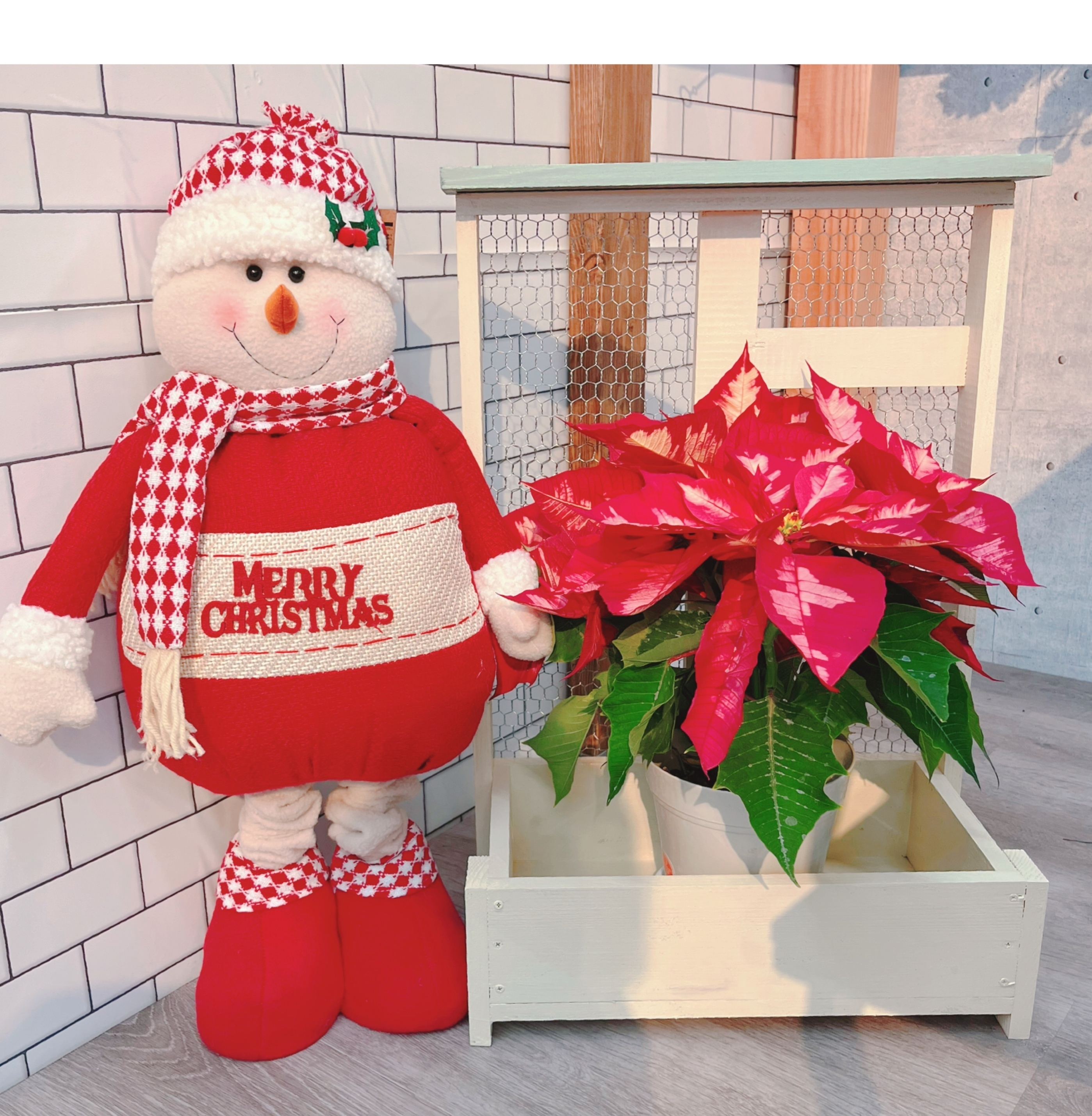 赤いポインセチアとお人形の可愛さにピッタリですね✨