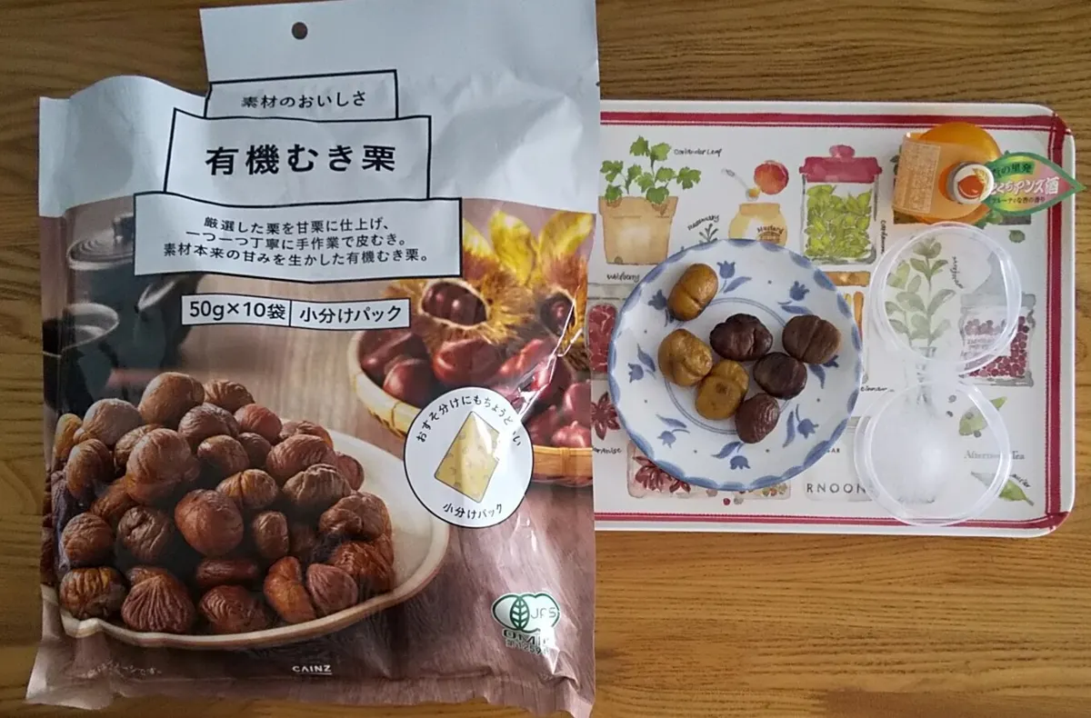 ・むき甘栗(CAINZにて購入)をシロップ煮し、柔らか、ほんのり甘い作りに