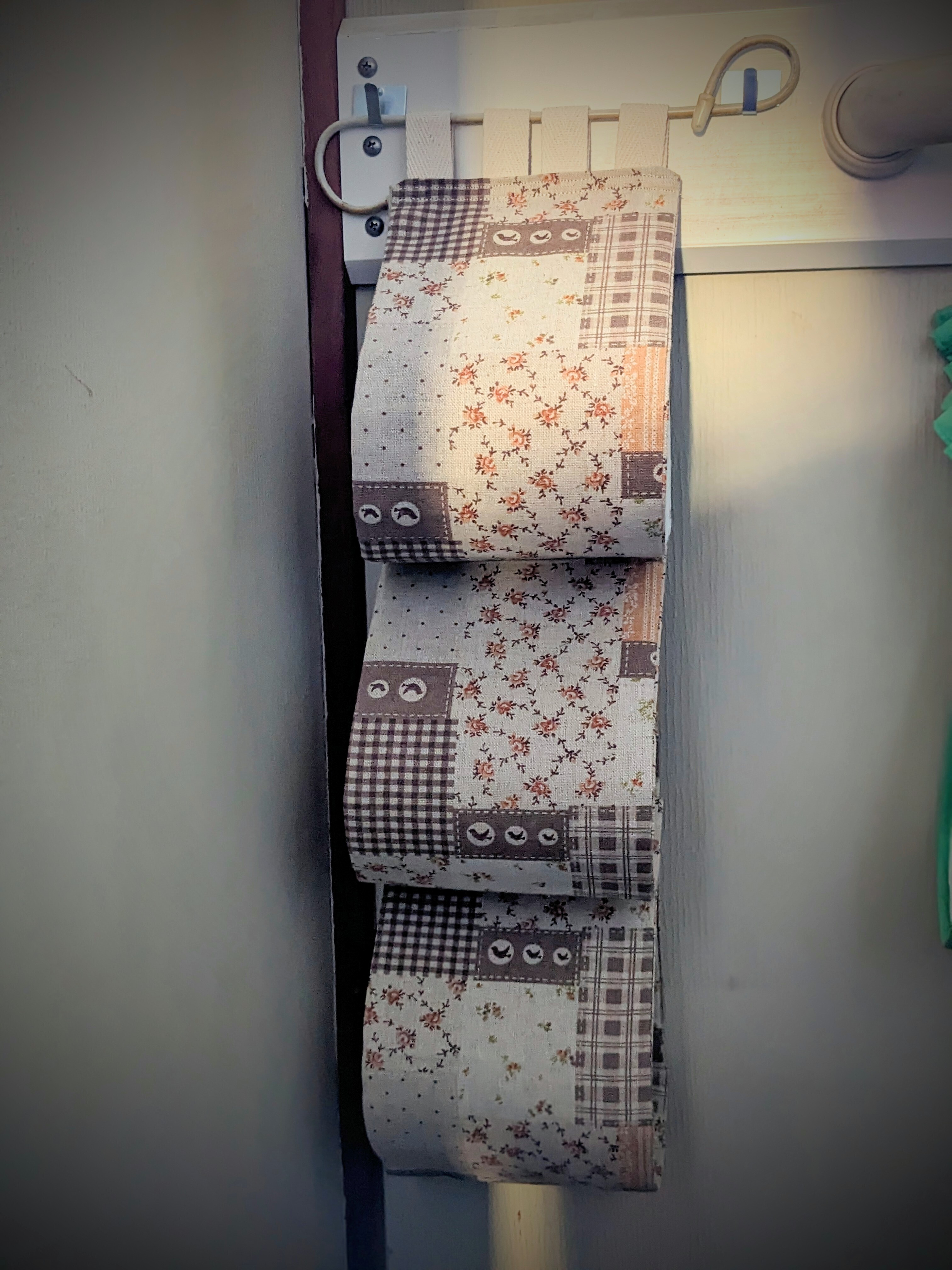 投稿を表示シンプルな壁に合う優しい柄ですね。3個も予備を下げて置けるのは安心✨お母さま喜ばれたのではないでしょうか?