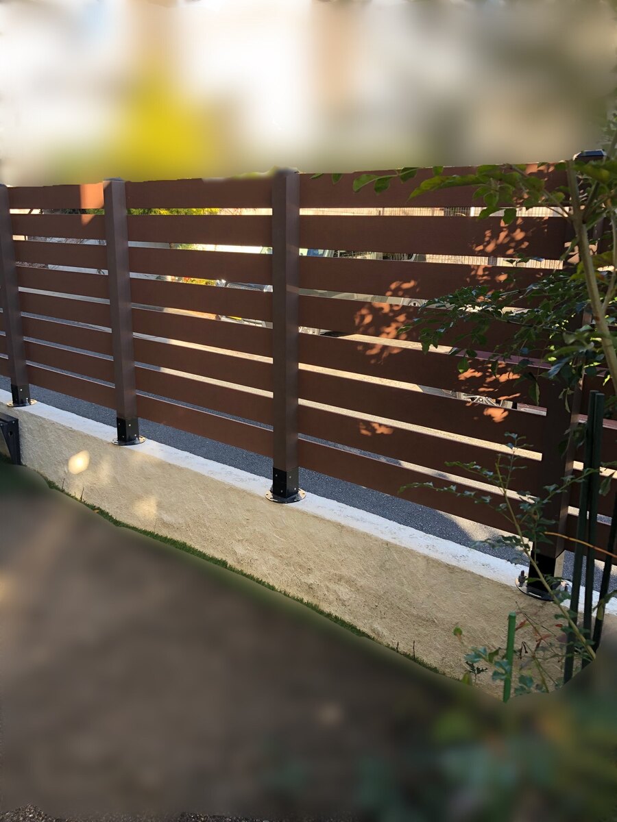 ウッドフェンスは、普通の木材だと雨や湿気で腐ってしまう恐れもあったので、耐久性があがるように人工木材を使いました❗️