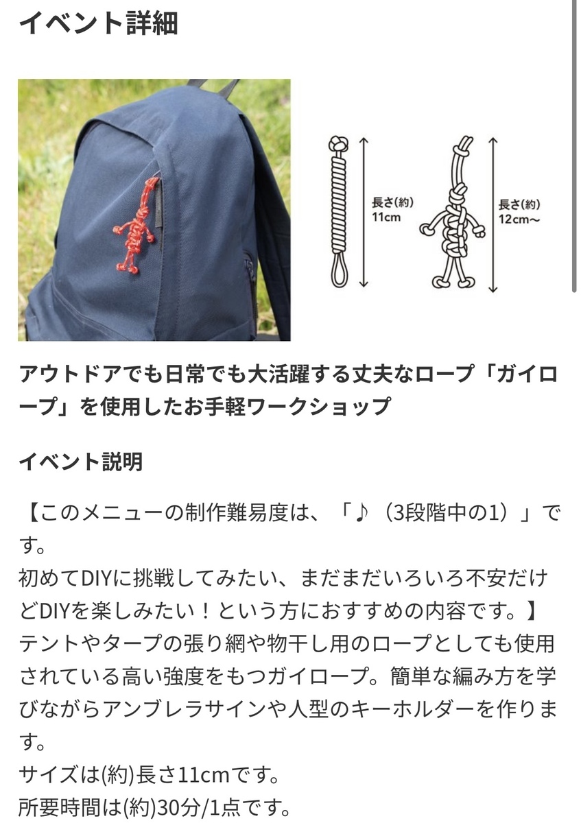 今日は、お手軽WS ガイロープでアンブレラサインとキーホルダーを作ってきました。
