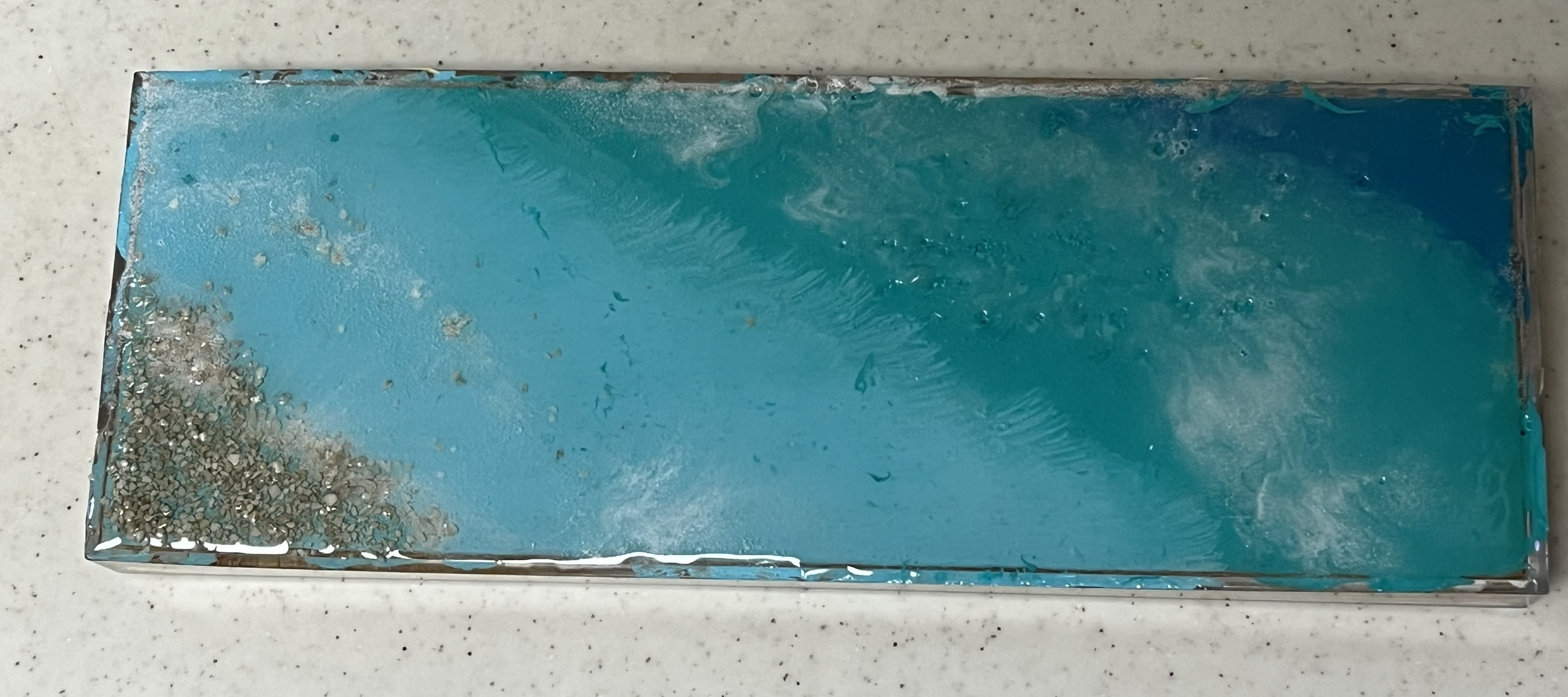 そこに絵の具で塗ってからレジンを投入したのですが、