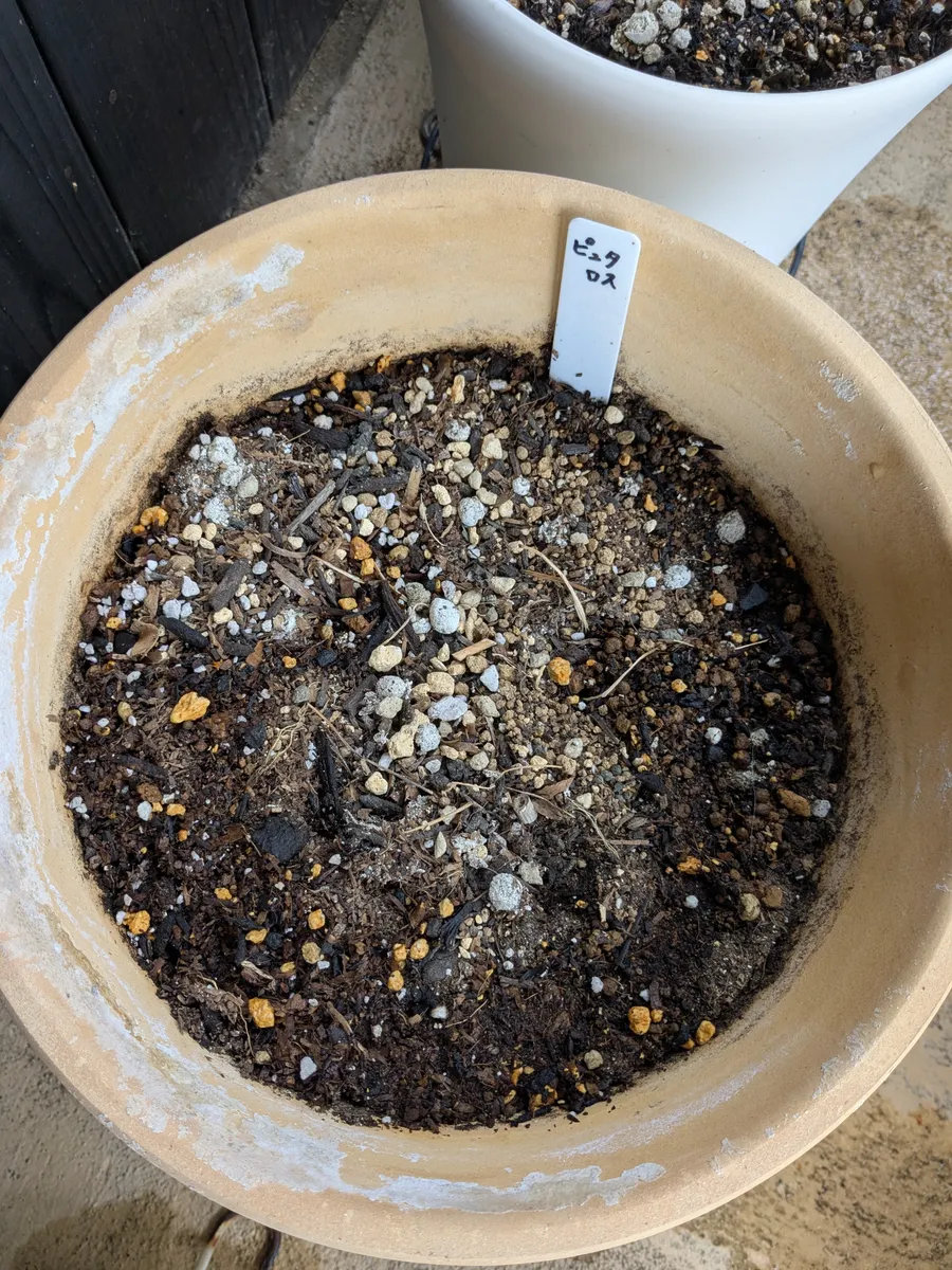 真ん中にある塊根に少しずつ水がしみていくようにします。