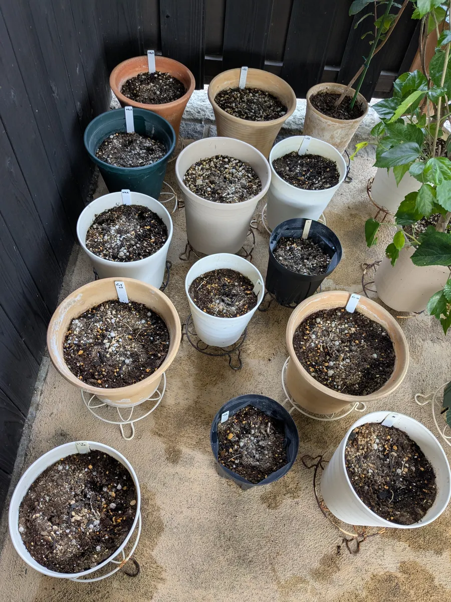 軒下に大移動してすべての鉢に少しの水をあげました!