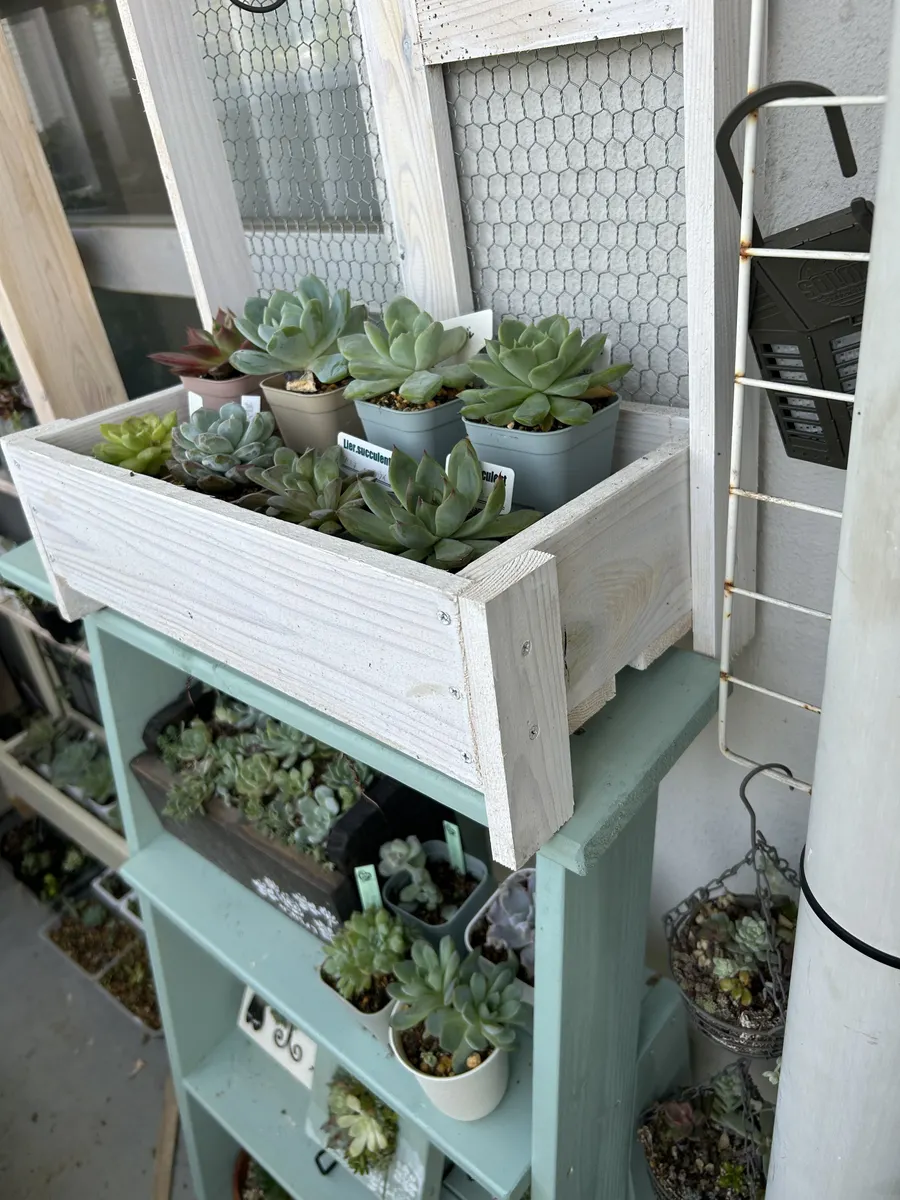 カラーも同じで木目の出るダスティーグリーン😊ほぼベランダのdiy作品は、白かダスティーグリーンにしてます。(片付かないなりの統一感を😅)ダスティーグリーンは超撥水なんで、水やりしても気にならない❣️素敵な塗料❣️