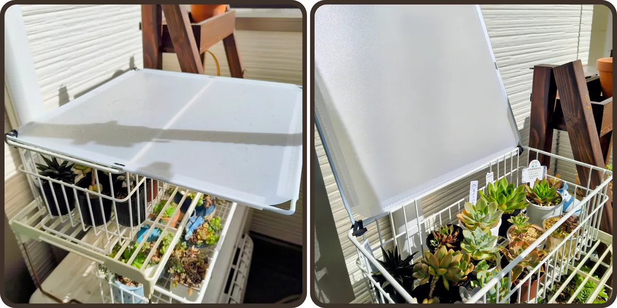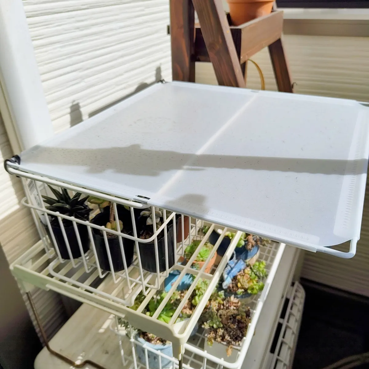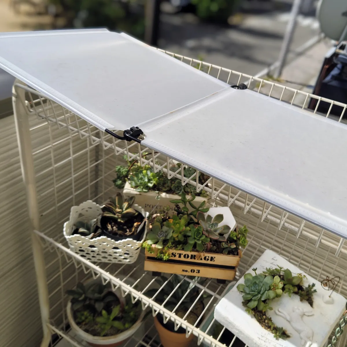 そろそろ、多肉ちゃん達もおひさまを浴びたい季節なので、屋根はいらない、と思いきや、雨が降ると慌てるので、このやり方なら、パタンと閉じてあげれば🆗🙆♀️
