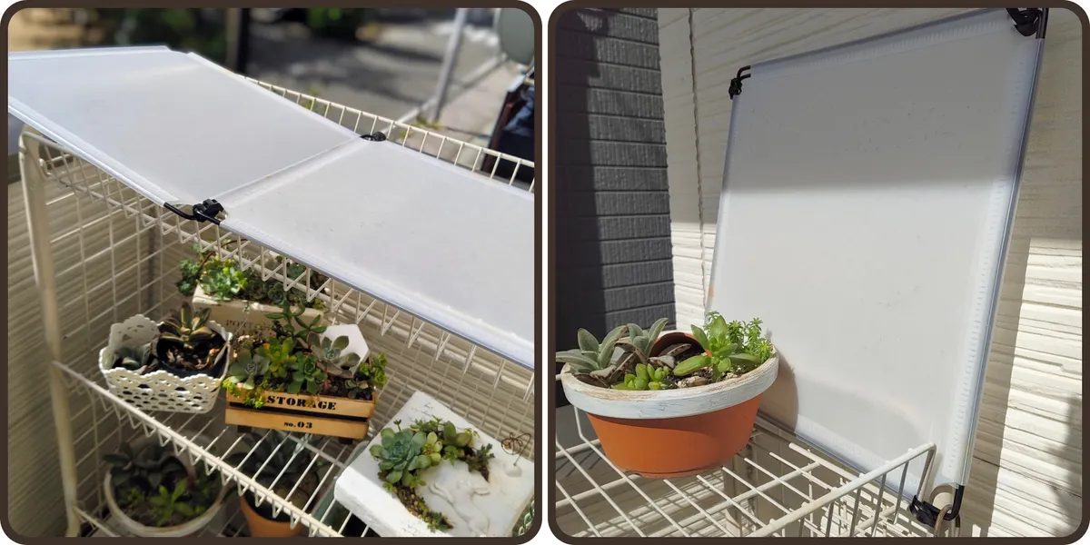 このパネルなら、完全に日陰にならずに遮光ができて、雨除けにもなります😃