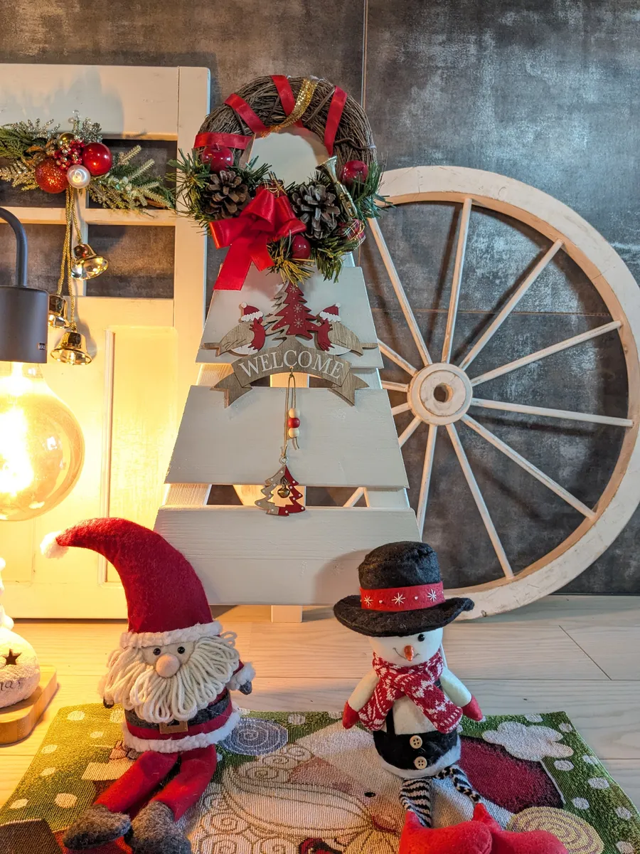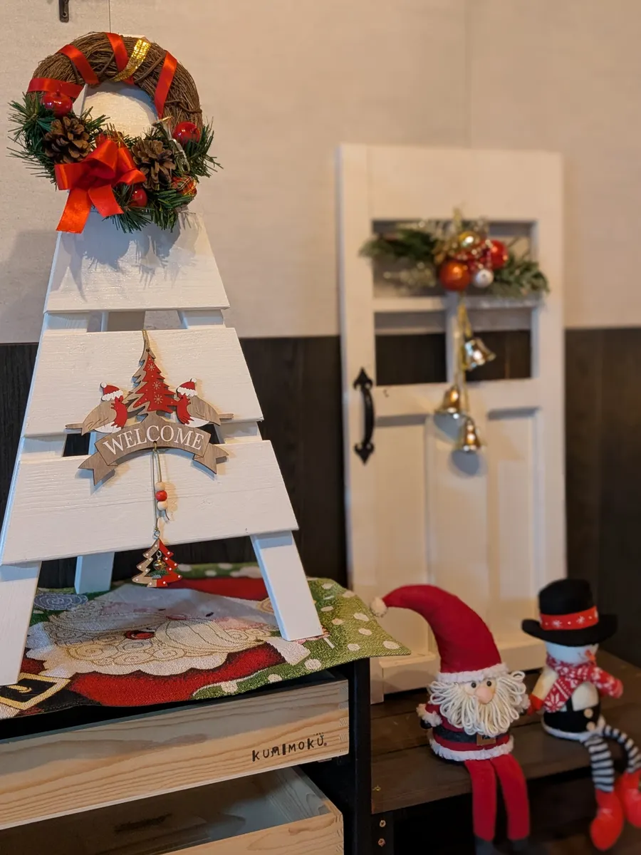 投稿を表示リーススタンド作られたのですね。白ってイイね💕クリスマスの小物たちが賑やかで、とっても映えますね😊👍✨