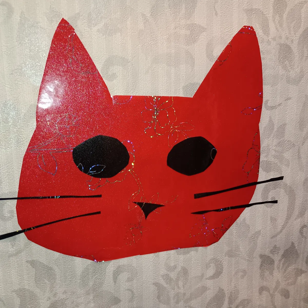 壁紙でビフォーアフター綺麗に貼れました。張り替えたからには、もう犯人は手が出せないように見張りに目が怖い赤猫、これを見たら流石に手は出すまいデスね😀👏👏👏