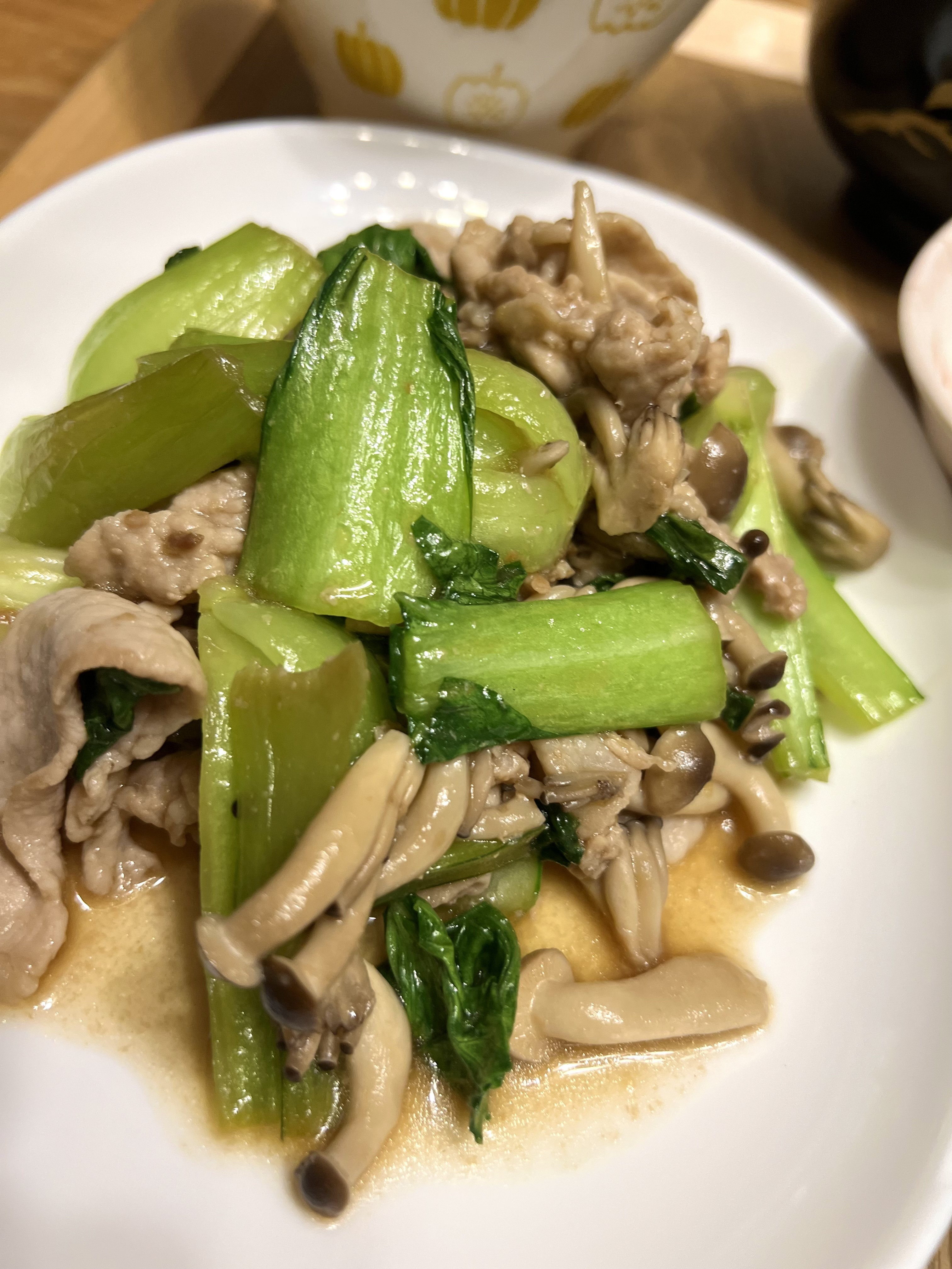 青梗菜と豚肉としめじ炒め