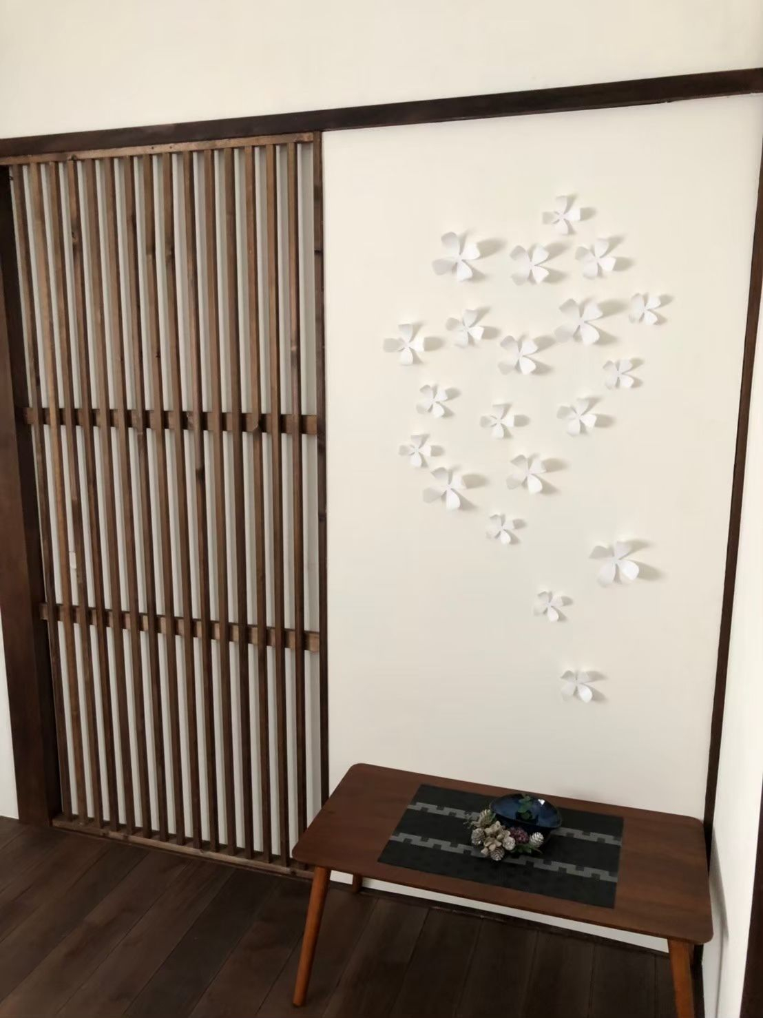 一面ポイント壁にしたくて襖の片側にベニヤを固定し塗り壁をしました。そしてもう一方の襖の手前に格子を製作しました。
