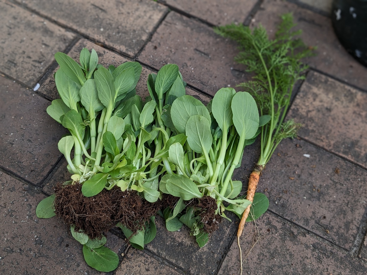 🥕さんもチンゲンサイも、美味しく頂けて嬉しい収穫ですね🎶