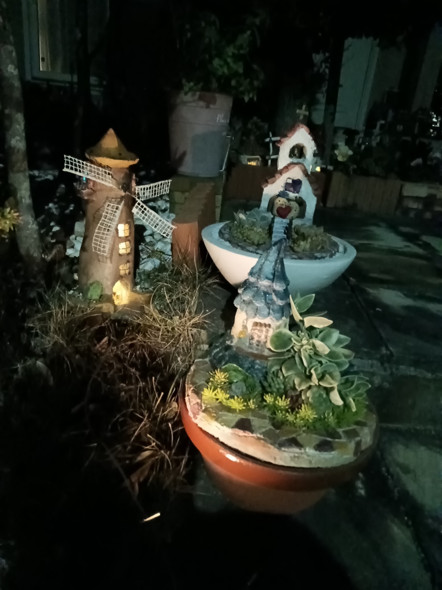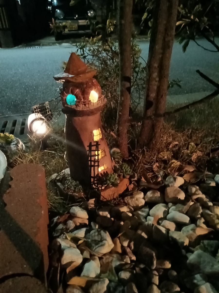 我が家の、夜のライトアップつちだま達をご紹介させてください🙇