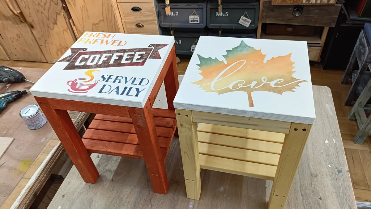 脚のカラーもメープル(もといパイン)で塗ろうとしましたが、濃かったので水で薄めてもらい、拭き取りながら塗装しましたらいい感じに☺️🩷