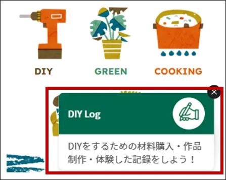 ※DIY Logの「作ったよ」のみの記録が対象となります。「買ったよ」「ワークショップに行ったよ」は対象外となりますのでご注意ください。