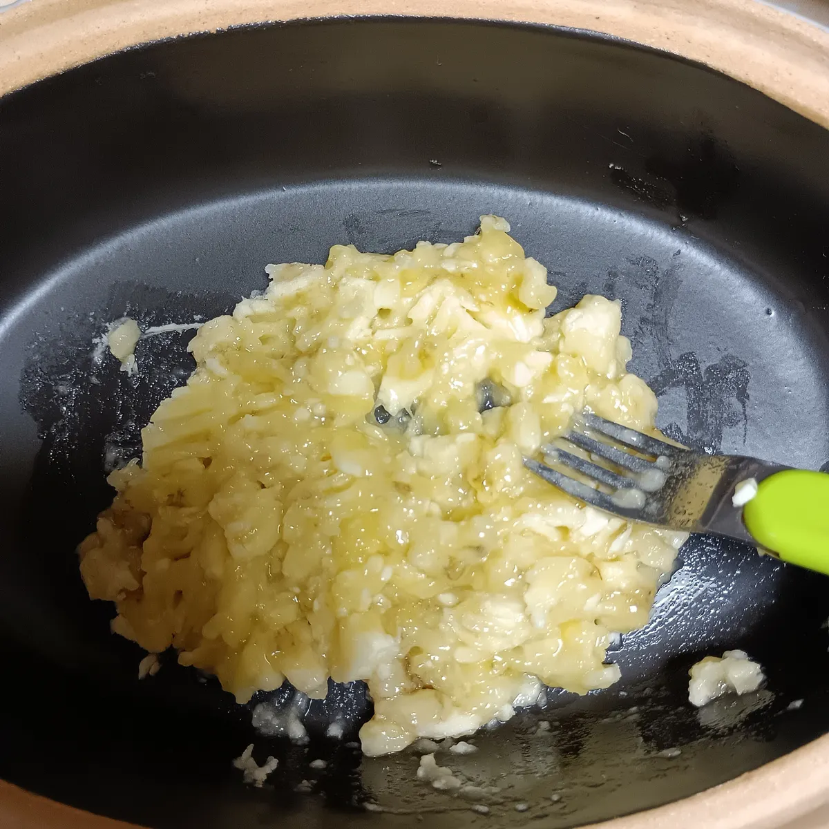 蓋を少しずらして600wで4分加熱、取り出して様子を見ながら追加加熱する