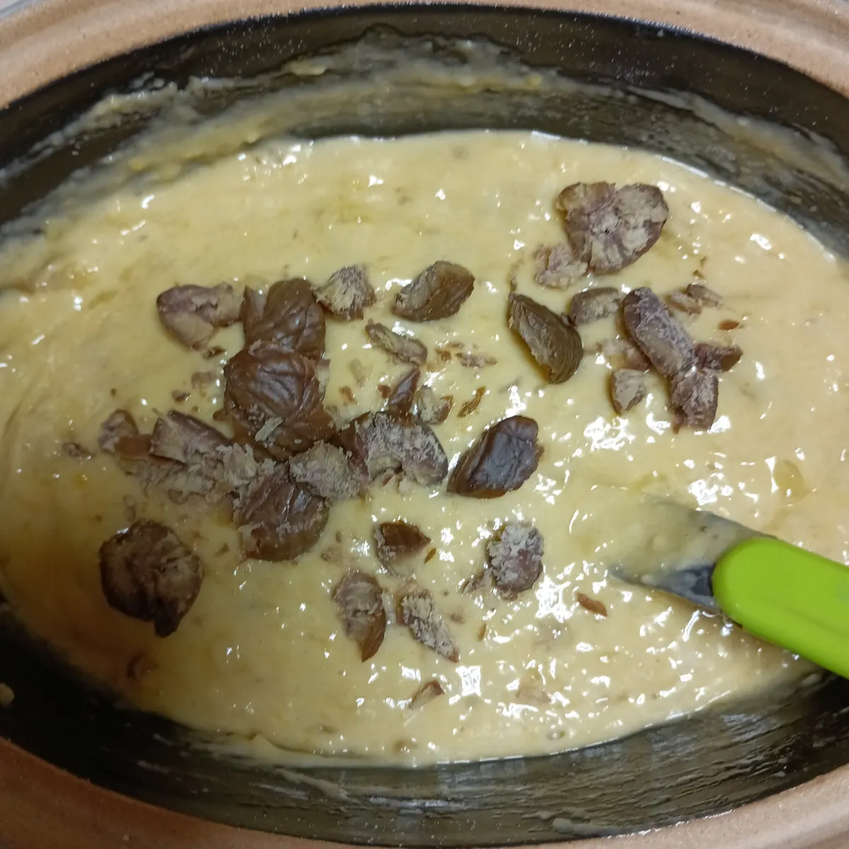 今回、甘栗を潰して3粒表面に乗せてみました。