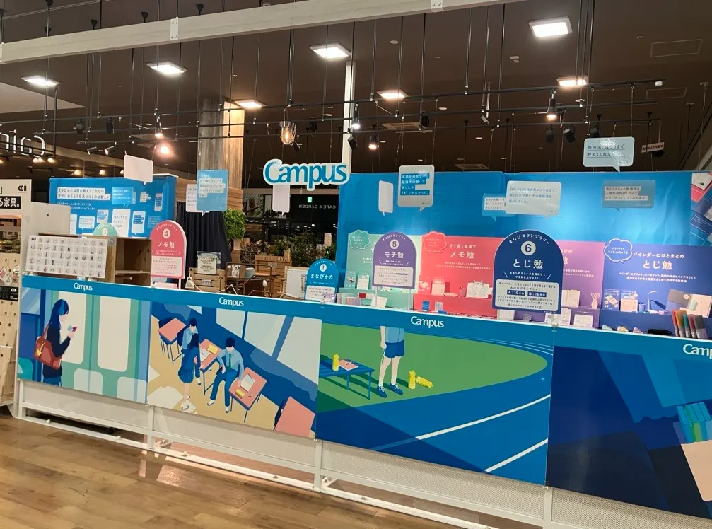 4つのテーマにあわせたCampus文具・関連商品の展示をご用意しています。