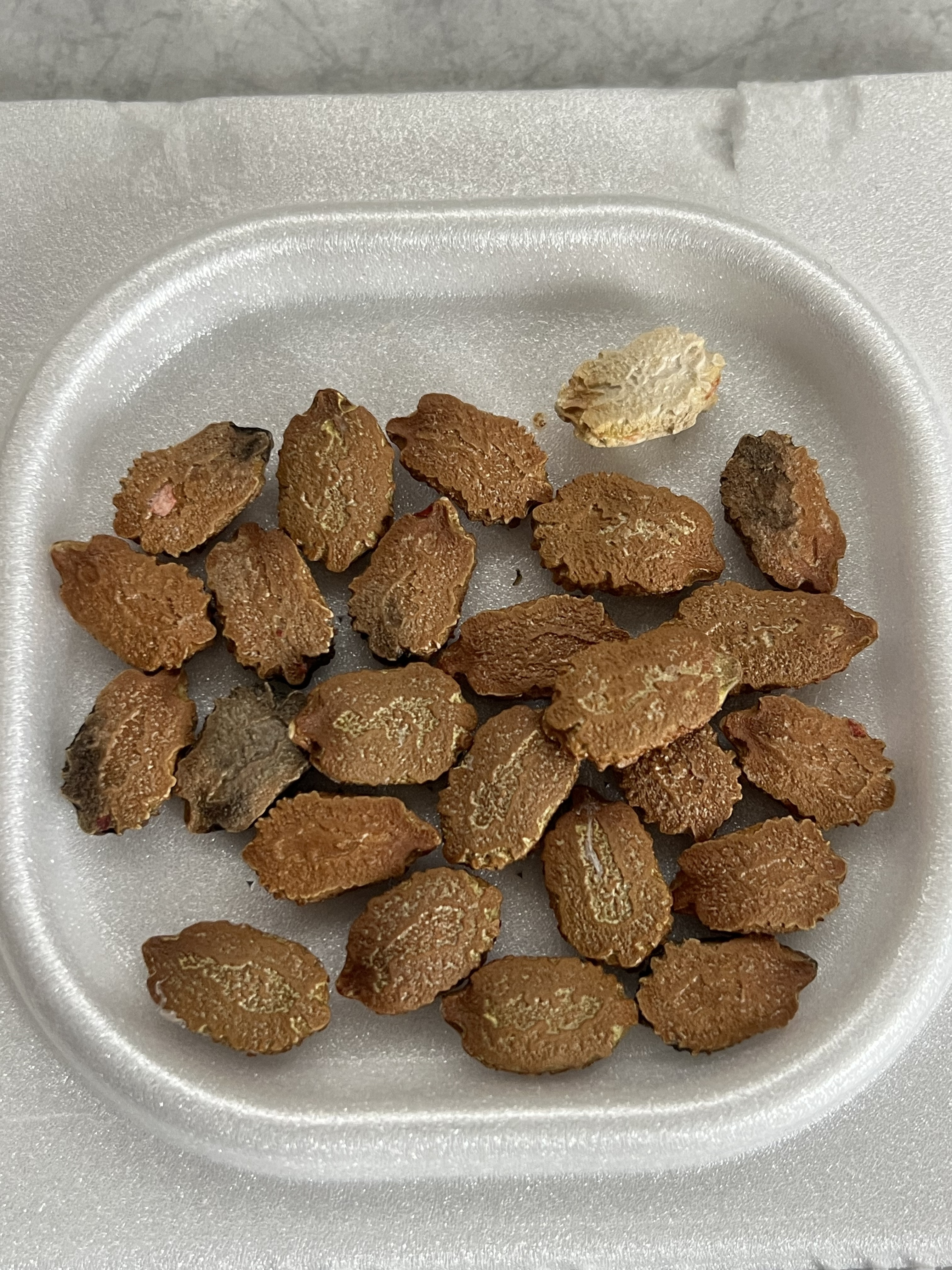 投稿を表示ゴ-ヤの種 初めて見るけど こんなに大きいの?。梅干し の種位? ありそうだね。