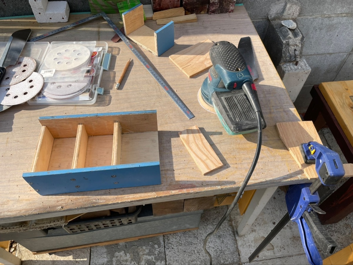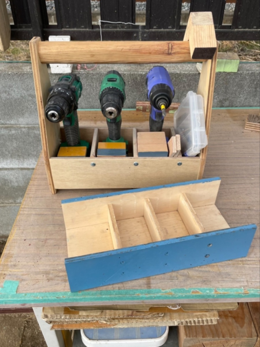 トップ > その他 > 電動ドライバー収納オカモチ風BOX部分を活力剤入れに衣替え ソラ5551 2023/03/23 10:06 電動ドライバー収納オカモチ風BOX部分を活力剤入れに衣替え 1月26日投稿の「電動ドライバー収納オカモチ風(ウクライナcolor)・改修」で余ってたBOX部分を再利用しました。 手前の青いBOX部分を使いました。一箇所を手鋸で切り落として、止め板を切り出し。ボンド圧着後、ビス留めしてます。ダイソーのラッカースプレーでカラーリングして完成。半ば雨晒し状態だったのを、ゴミ出しもせず再利用出来ました。 いいね 共有する 共有する X LINE リンクをコピー コメントする 0 件の返信 (新着順)