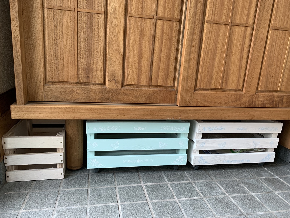 トップ > DIY > インテリア > コンテナボックス Smile 2022/04/26 12:44 コンテナボックス 先日、投稿したコンテナボックスを靴箱の下に置いて使っています。 二つ作っても少し空いてるスペースがあったので以前作ったコンテナをマイアレンジしてサイズも小さくして作ってみました✨ 底の部分は、一枚板に変えてみました😊 形は出来ましたが、塗装に悩んでいます😅💕 どんな作品になるのか分かりませんがゆっくり考えて最後の仕上げをしたいと思います💕✨ いいね 共有する 共有する X LINE リンクをコピー コメントする 2 件の返信 (新着順) ミュートしたユーザーの投稿です。 投稿を表示 たーたん 2022/04/27 07:07 ちょこりんさん❗以前の投稿で見せて頂いたミント色😄 仕上がりましたが!キャスターを100均で買ったものの ネジが付いてなくて😭まだ未完成のままです💦どんな色になるのか楽しみです💖底板があるのも👍いいよね🎵 いいね 返信する ミュートしたユーザーの投稿です。 投稿を表示 Smile 2022/04/27 07:35 たーたんさん、ありがとうございます😍✨ ホワイト、ミント…次は何色にしようか🤔悩んでいます🤣💕 あまり期待しないで待っていて下さいね😂💕✨ いいね 返信する ミュートしたユーザーの投稿です。 投稿を表示 檸檬 2022/04/26 23:58 シンデレラフィット素敵😍 どんな色になるのか楽しみ🎶 また投稿して下さいね💚 いいね 返信する ミュートしたユーザーの投稿です。 投稿を表示 Smile 2022/04/27 07:33 檸檬さん、いつもありがとうございます😍✨ あれから、ピチピチ過ぎるかなと思い2㌢幅を小さくしました😅 なので、ちょうどいい感じになったと思います😊💕 完成をお楽しみに💕✨ いいね 返信する
