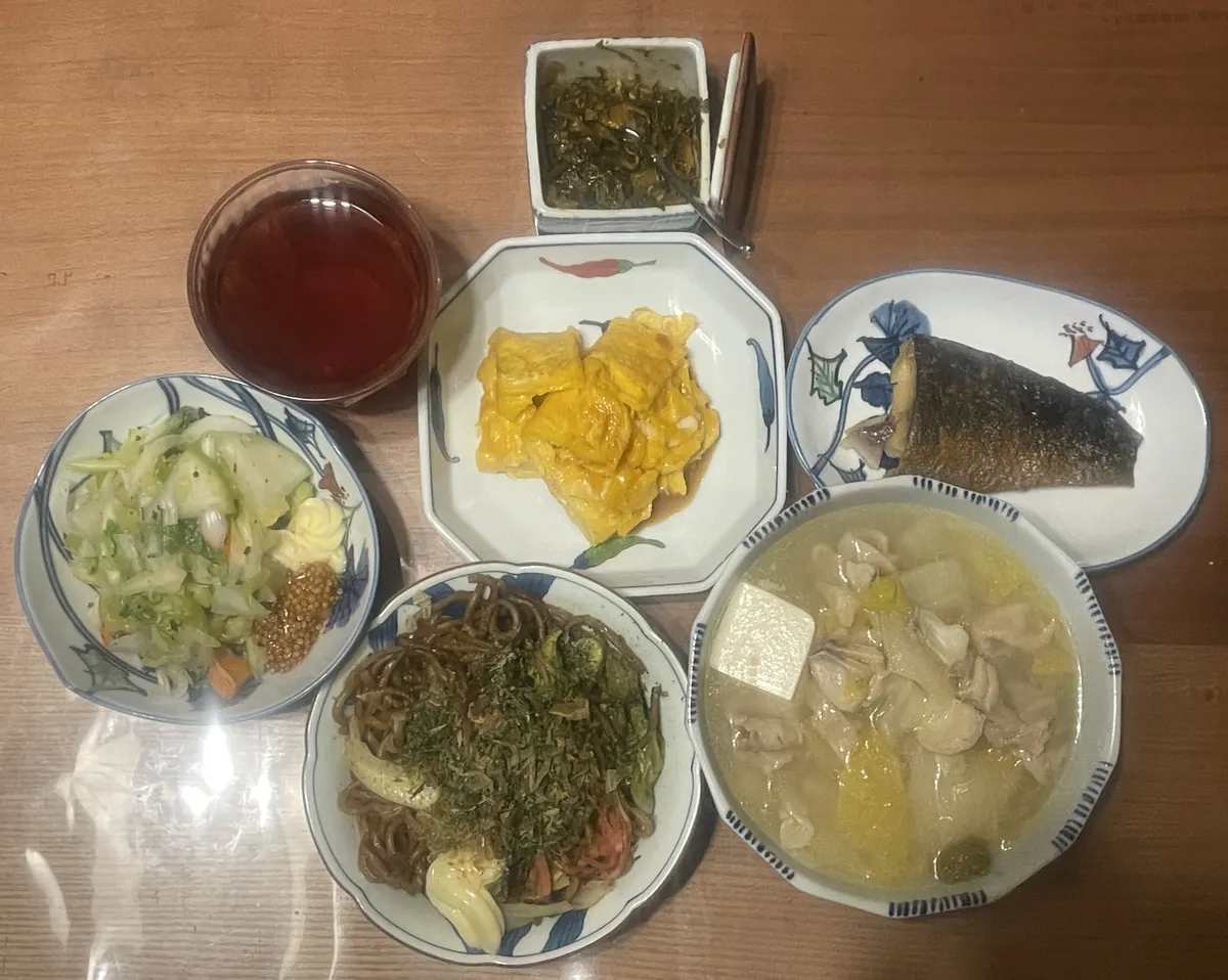 西京漬に主食が焼きそばだけではお口がさっぱりしにくいでしょから、実はここに写ってない炭水化物があったんじゃないでしょうか?