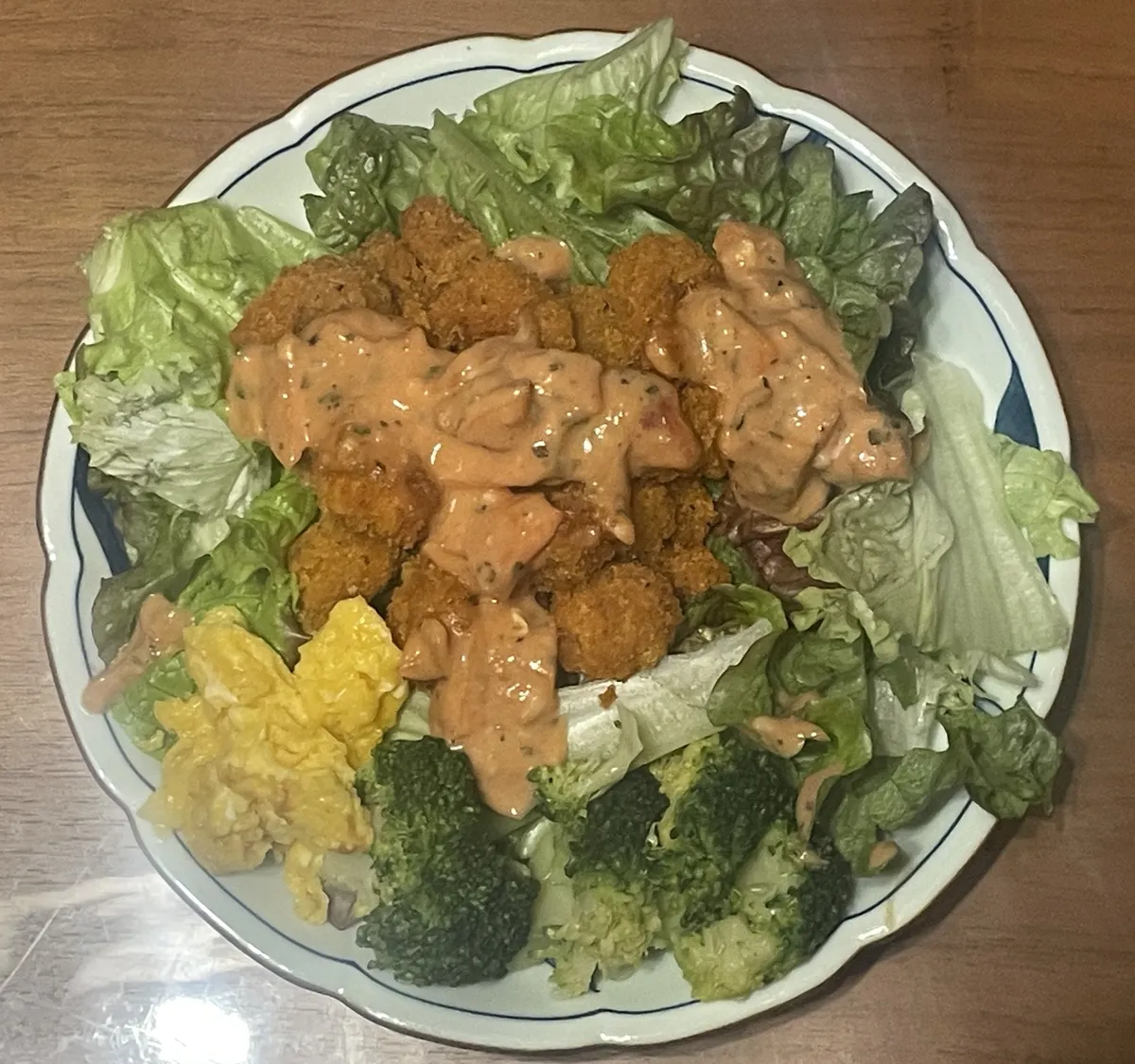 (上に乗っかってるのはスパイシーシュリンプフライなんだけど🍤🌶️✨