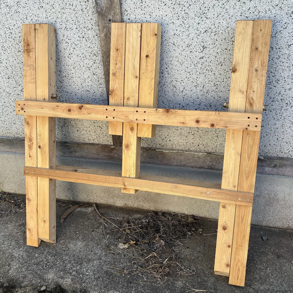 トップ > DIY > その他 > 薪用の玉切り台 とまと 2025/10/19 18:38 薪用の玉切り台 薪ストーブ用の薪の原木が3トンほど届いたので玉切り作業用に玉切り台を作成しました。 ボルトを使って折りたたみ式にしました。60mm角材を使用しましたのでしっかりと作りになりました。 反省点としては薪材と横の木材が近くなりすぎて、チェーンソーに接触しやすくなってしまいました。 薪ストーブ チェーンソー いいね 共有する 共有する X LINE リンクをコピー コメントする 0 件の返信 (新着順)