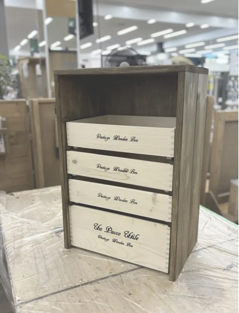引き出しにベニヤで縁取りをしてアイアンペイントしました😊