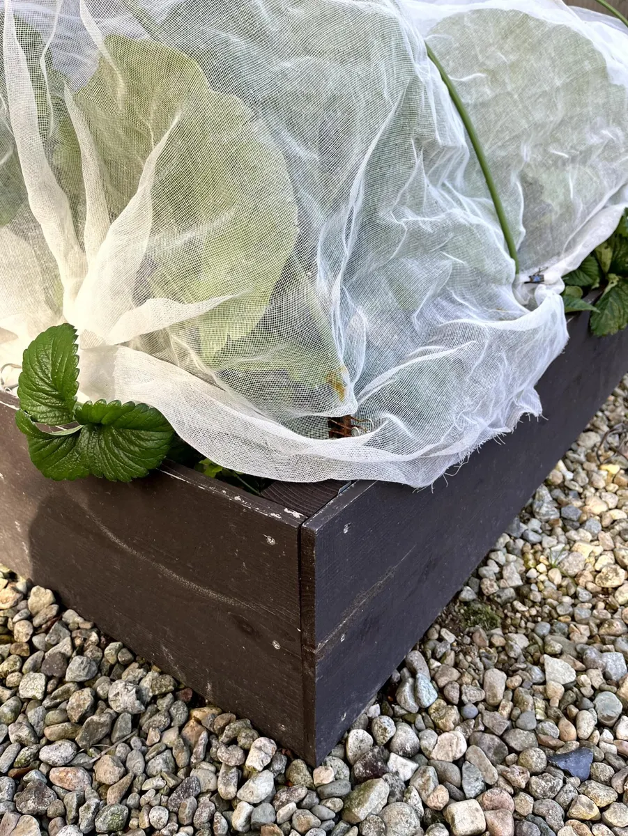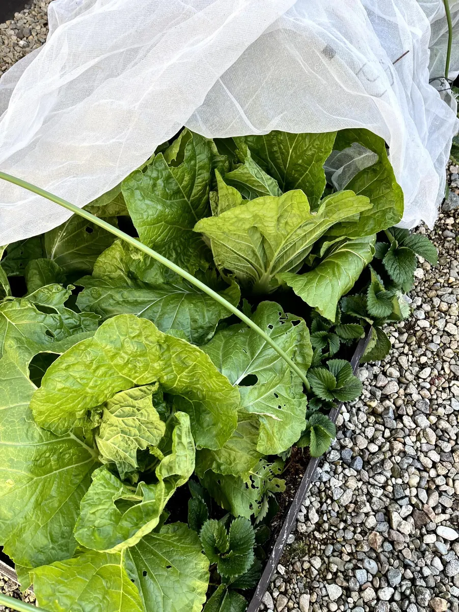 低めレイズドベットに白菜の苗を植えました。トンネル仕立てで防虫しました。