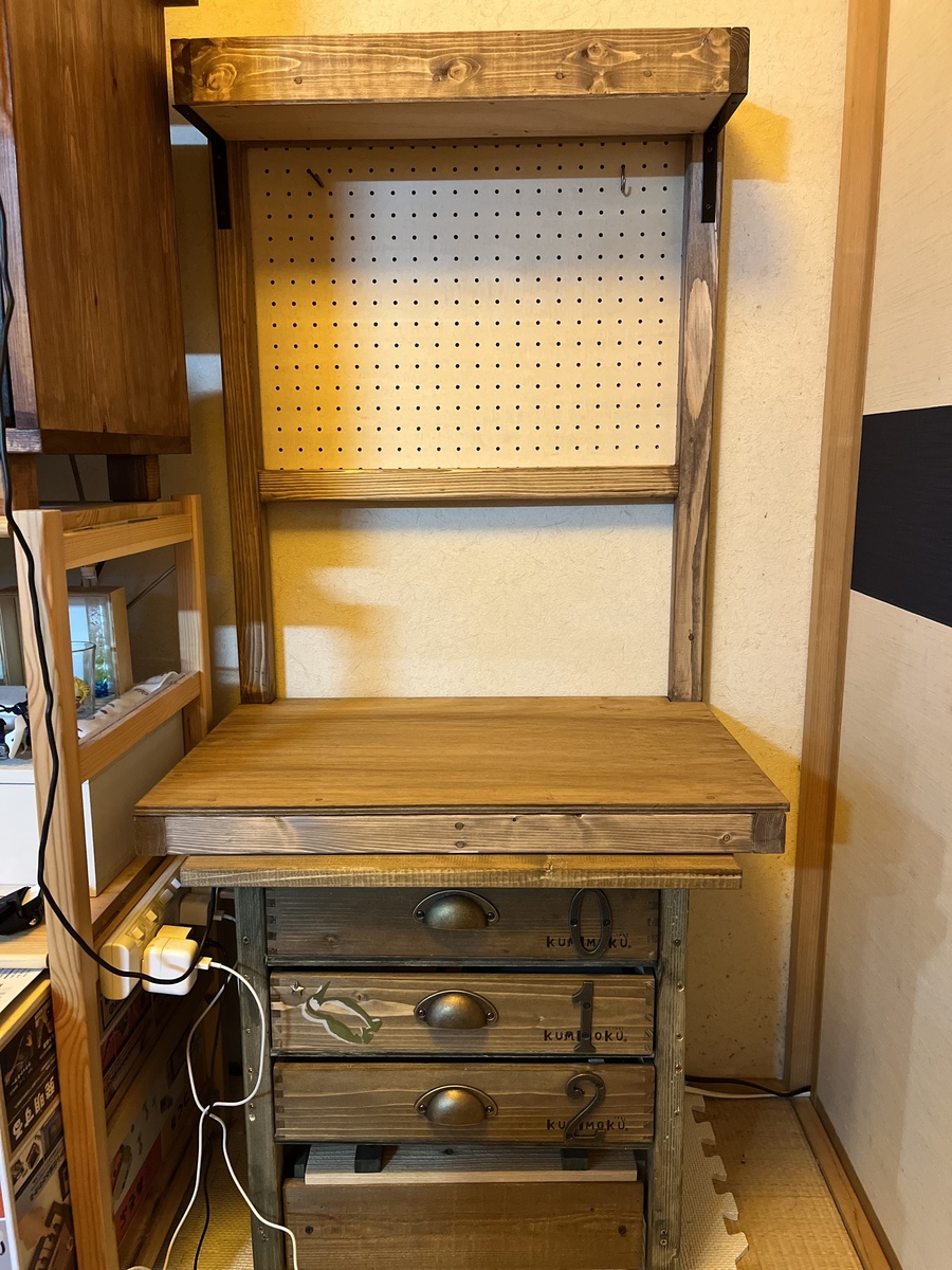 前に作っていた引き出し付デスクの上に置いて使いたいなと思い、作りました。