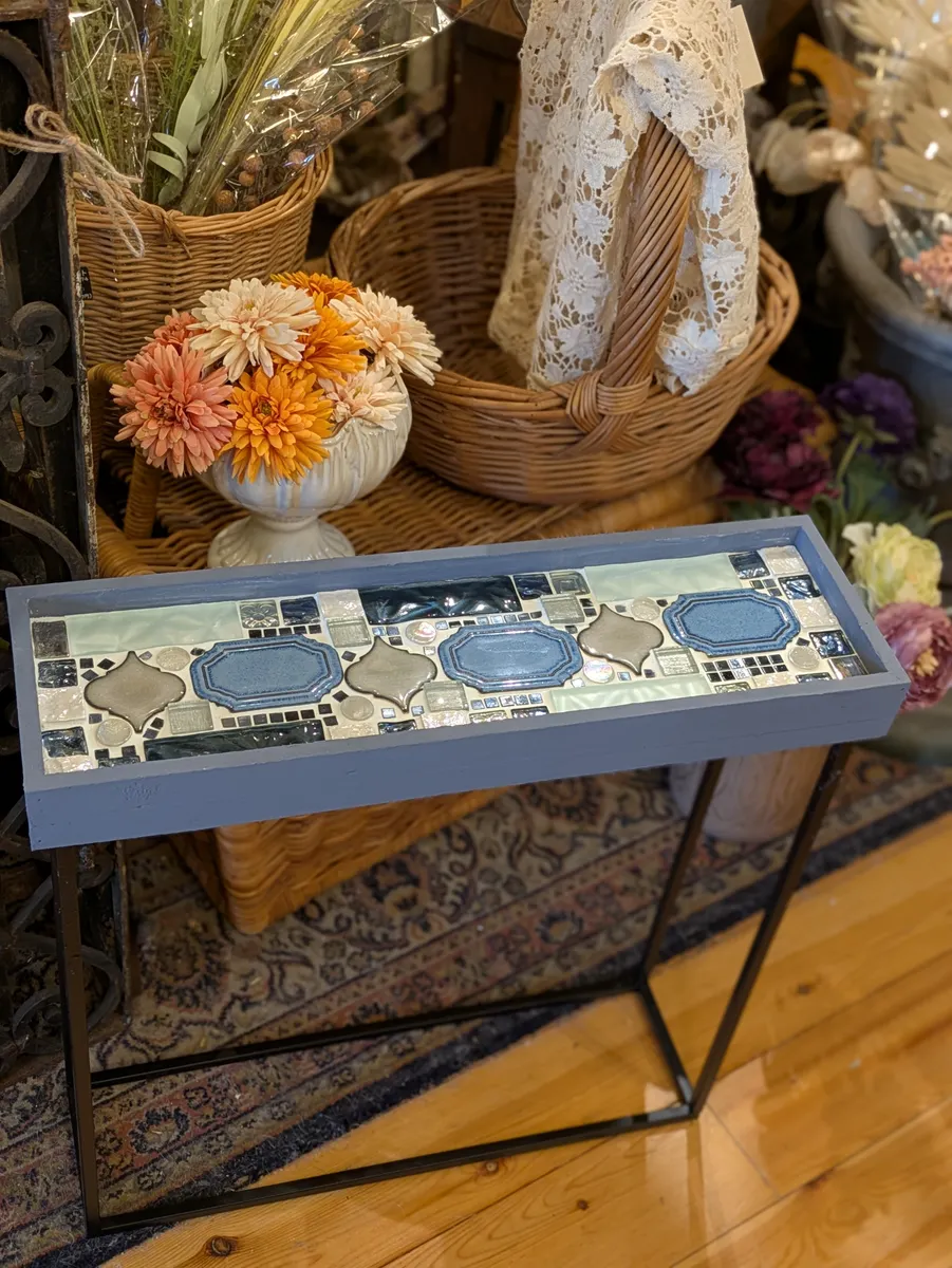 お色がブルーでまとまっていてとっても素敵なタイルの花台ですね😍