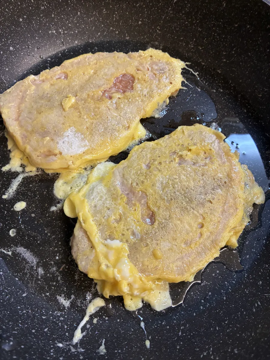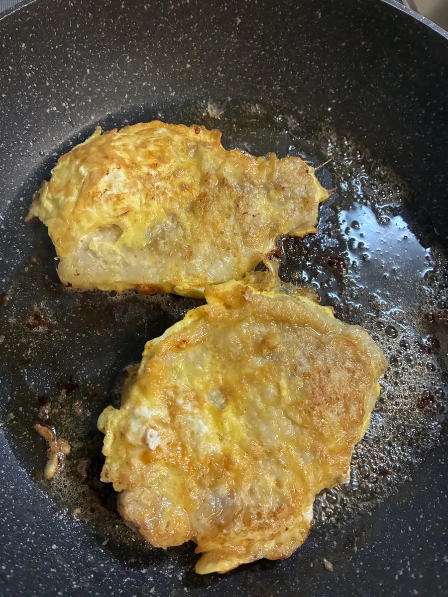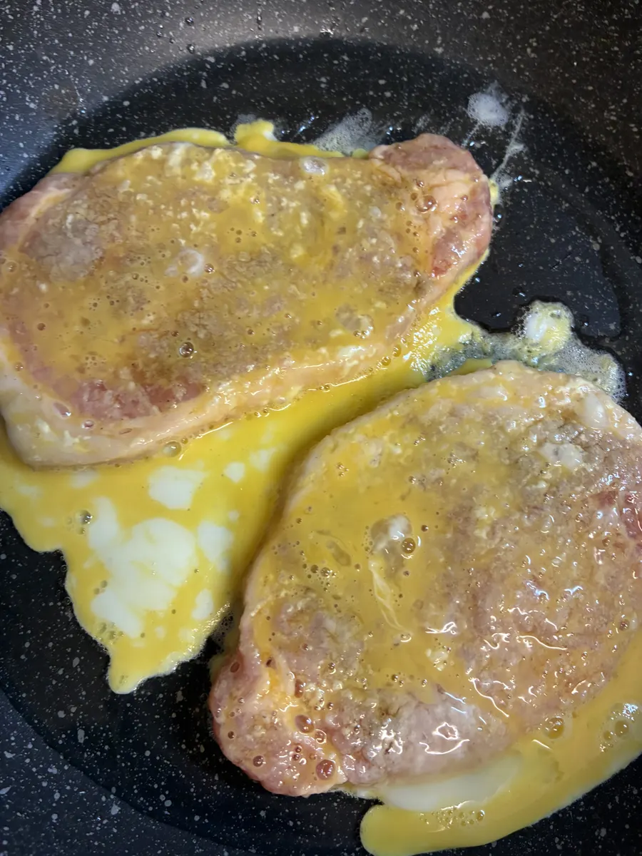 トップ > クッキング レシピ > 料理 > ポークピカタ♡ さくら♡ 2026/01/19 21:01 ポークピカタ♡ ■材料 豚ロース厚切り 玉子 1個 小麦粉、塩胡椒、サラダ油 ■作り方 ①豚ロース肉を筋切りし、叩いておく。 ②塩コショウした肉に小麦粉をまぶす。 ③フライパンに油を熱し、溶いた玉子を②のお肉に満遍なくつけて焼く。 余った卵液も一緒に流し込む④片面が焼けたらひっくり返して、火を弱めフタをする。両面こんがり焼けたら出来上がり。 ■工夫ポイント 鶏肉の時はポン酢マヨで食べるのですか、豚肉はケチャップが美味しかったです😋 玉子がこんがり焼けた風味がサイコー💕 いいね 共有する 共有する X LINE リンクをコピー コメントする 6 件の返信 (新着順) ミュートしたユーザーの投稿です。 投稿を表示 はるかのん 2026/01/29 16:58 美味しそうですね♪♪ 今度作ってみますねー🥰 いいね 返信する ミュートしたユーザーの投稿です。 投稿を表示 ダンボ 2026/01/27 09:02 とても美味しそうですね! いいね 返信する ミュートしたユーザーの投稿です。 投稿を表示 はっちゃん 2026/01/22 21:12 美味しそう いいね 返信する ミュートしたユーザーの投稿です。 投稿を表示 あにー 2026/01/20 14:26 あにーはうまく作れない😂😂 いいね 返信する ミュートしたユーザーの投稿です。 投稿を表示 toshi 2026/01/20 11:27 美味しそうですね これは絶対食べたいですね たくさん食べちゃいますね😊 いいね 返信する ミュートしたユーザーの投稿です。 投稿を表示 はっちゃん 2026/01/20 12:08 toshi 美味しそう いいね 返信する ミュートしたユーザーの投稿です。 投稿を表示 さくら♡ 2026/01/20 13:23 toshi 玉子でおめかしして、優しいお味です♡ いいね 返信する ミュートしたユーザーの投稿です。 投稿を表示 toshi 2026/01/20 13:35 さくら♡ 卵があると味変わりますよね😊 いいね 返信する ミュートしたユーザーの投稿です。 投稿を表示 かふぇ 2026/01/19 22:16 美味しそうですね~😄 今度作ってみたいです✨ いいね 返信する ミュートしたユーザーの投稿です。 投稿を表示 さくら♡ 2026/01/20 07:56 かふぇ 一度お試しください╰(´︶`)╯♡ いいね 返信する