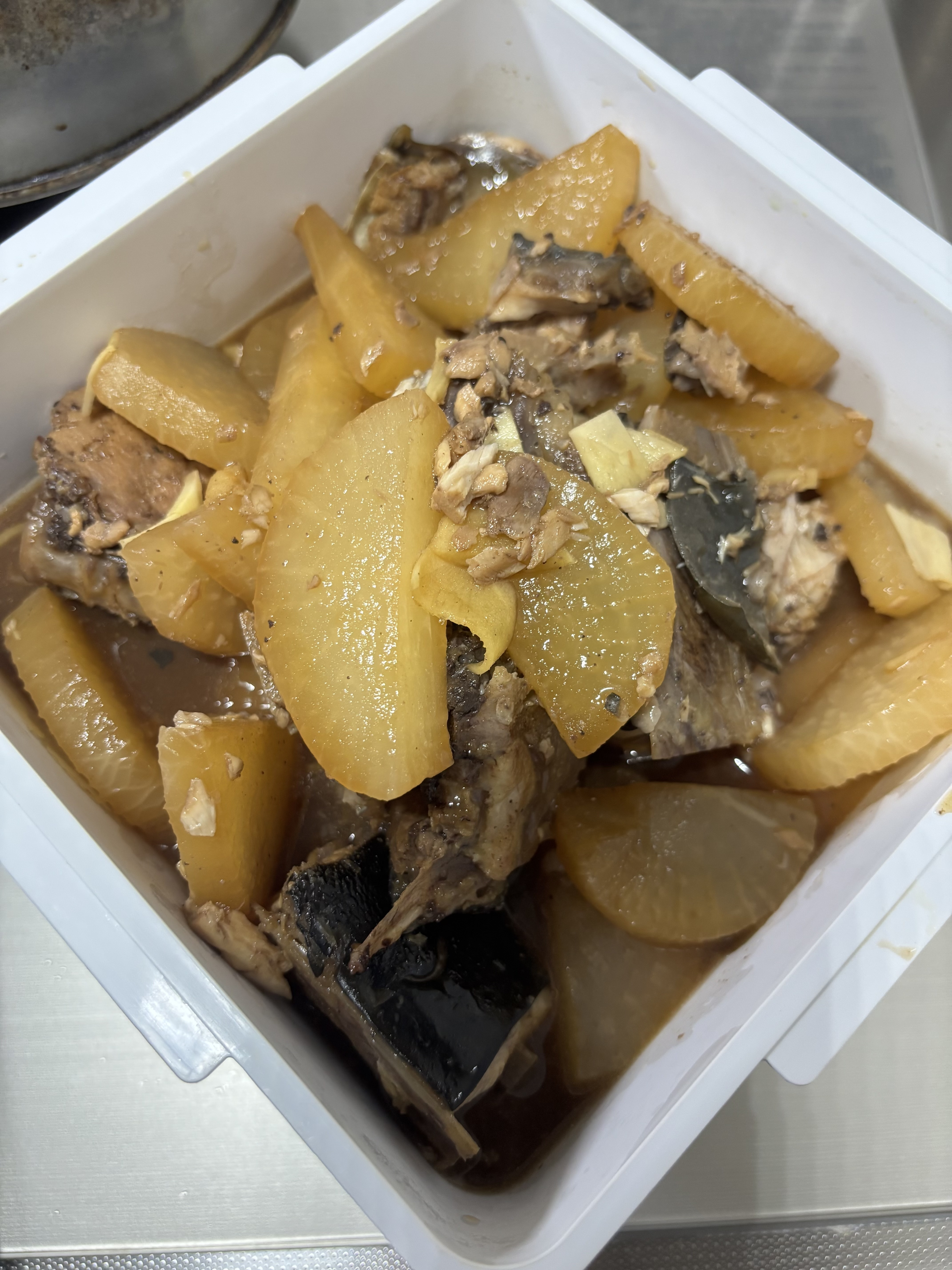 トップ > クッキング > 料理 > ぶり大根 マリーモミ 2025/10/19 16:26 ぶり大根 スーパーでブリのアラがあったので大根と煮ました。大根が良い色に仕上がって😌 ブリは後から出刃包丁で食べやすい大きさに切ったのでダメですね。生の内に切らないと。 大根の皮とソーセージ💦もう少し麺のように細く‥切れなくて😅 大根の皮のペペロンチーノ風です。 後で食べられるようにタッパーに入れてテーブルの上に置いてたら夫がおつまみに全部食べてしまって😓 いいね 共有する 共有する X LINE リンクをコピー コメントする 1 件の返信 (新着順) ミュートしたユーザーの投稿です。 投稿を表示 シン ひよっこ 葵 2025/10/21 20:17 マリーモミさん、こんばんは ブリ大根のおいしい季節ですねぇ✨(人´∀`) いいね 返信する ミュートしたユーザーの投稿です。 投稿を表示 マリーモミ 2025/10/21 21:56 シン ひよっこ 葵 大根ももう少しお安いといいんですが😁 柔らかな大根で美味しかったです🤭 いいね 返信する ミュートしたユーザーの投稿です。 投稿を表示 シン ひよっこ 葵 2025/10/22 21:19 マリーモミ (●´ㅂ`●) いいね 返信する
