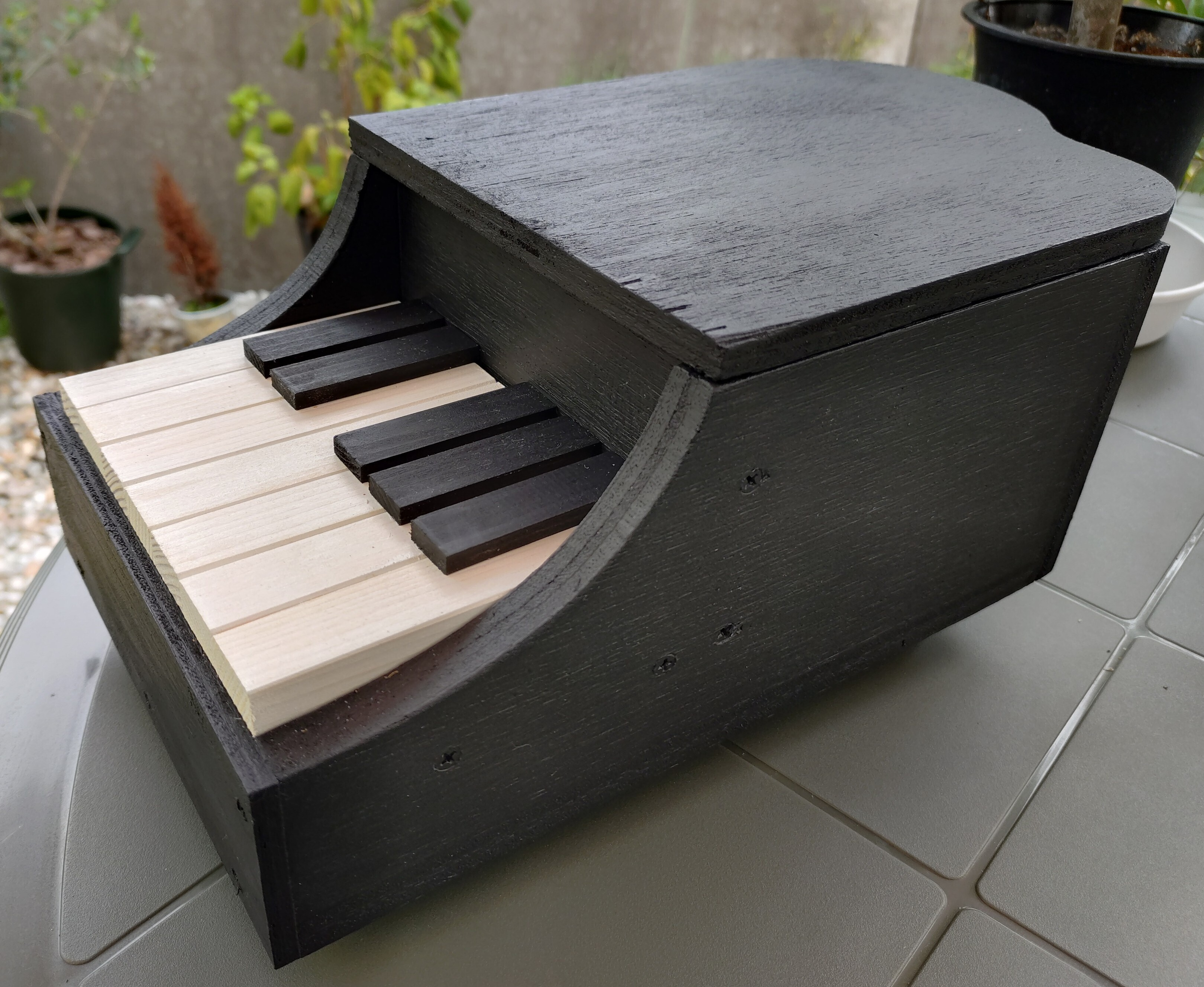 トップ > DIYアワード2025 > キャンペーン > ピアノ型プランター りかちゃん 2025/10/03 20:34 ピアノ型プランター ■作品内容 ピアノ型プランター ■こだわりポイント 白鍵は角を少しヤスリで落としました グランドピアノのように蓋を付けたくて、事前に蓋となる木材を購入しました 丸棒を取り付け、蓋の方に浅く穴を掘り、丸棒が引っかかるようにしました 丸棒は可動するので、蓋を閉めたい時は箱の中に収まります アドバイザーさんの御指導のおかげでとても綺麗に仕上がりました👏 側面のステンシルは未だ迷っています 自作で作ったのですが… 何でもやりすぎてしまうので、工房では御印にしている足跡だけ、ポチッと🐾 木工DIY部門【DIYアワード2025】 いいね 共有する 共有する X LINE リンクをコピー コメントする 2 件の返信 (新着順) ミュートしたユーザーの投稿です。 投稿を表示 いくピ 2025/10/04 07:34 ぴったりの蓋がついたねー👍 すてき❤️ いいね 返信する ミュートしたユーザーの投稿です。 投稿を表示 りかちゃん 2025/10/04 09:10 いくピ マイストアの師匠に助けてもらいました👏 つっかえ棒とか動くようにアイデア出してくれたのも師匠🎵 いいね 返信する ミュートしたユーザーの投稿です。 投稿を表示 いくピ 2025/10/04 17:25 りかちゃん 昨日行ってきたから話を聞いたよ😆 いいのができてよかったね‼️👍 いいね 返信する ミュートしたユーザーの投稿です。 投稿を表示 りかちゃん 2025/10/04 18:33 いくピ 師匠が居るから出来たのよ🎵 じゃなきゃ無理だ😨 いいね 返信する ミュートしたユーザーの投稿です。 投稿を表示 きゃな 2025/10/04 06:37 素敵 いい感じです✨ いいね 返信する ミュートしたユーザーの投稿です。 投稿を表示 りかちゃん 2025/10/04 07:26 きゃな ありがとうございます😊 絵心無いのでステンシルに頼りたいんですが、シンプルにこのままのほうが良いのか、悩んでます… いいね 返信する