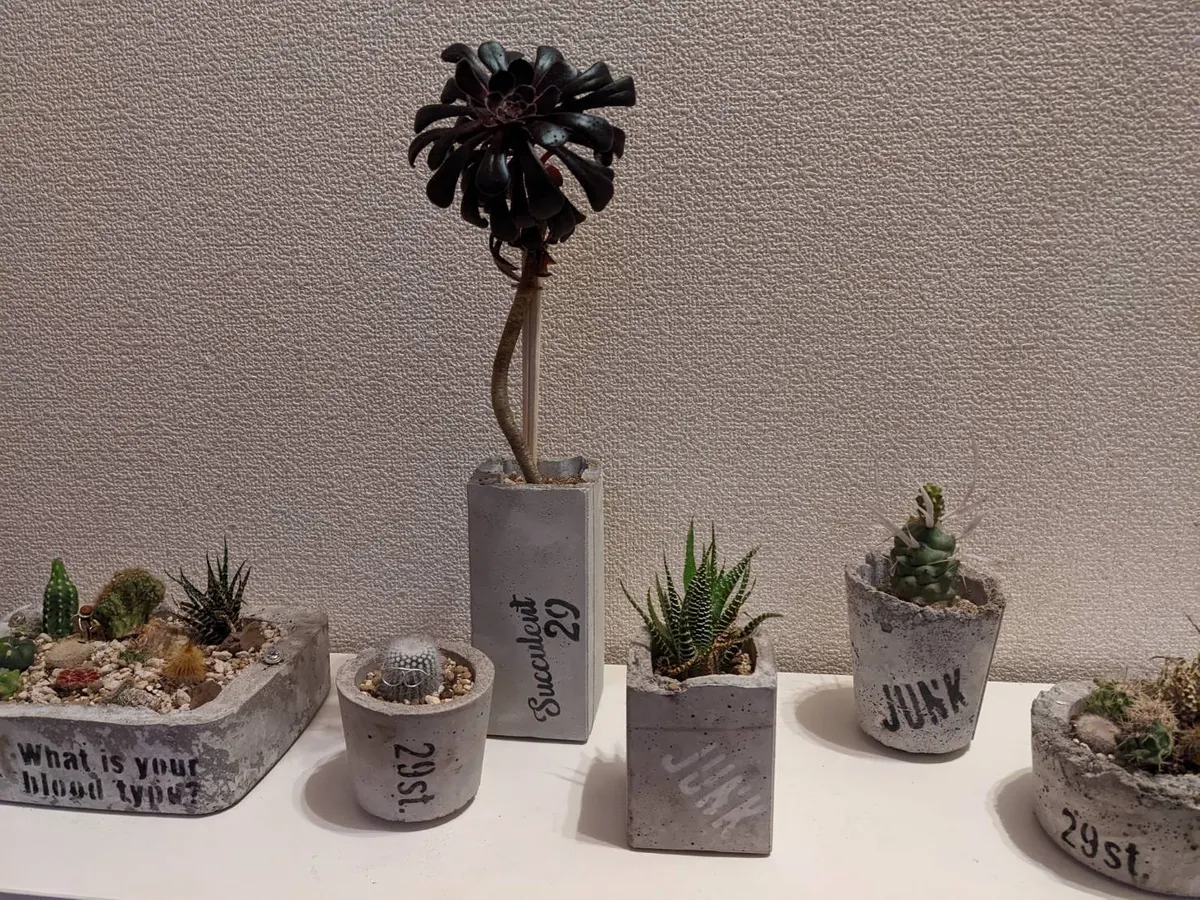 セメントの風合いとサボテン🌵がピッタリ❣️水につけておけば良いのですね!