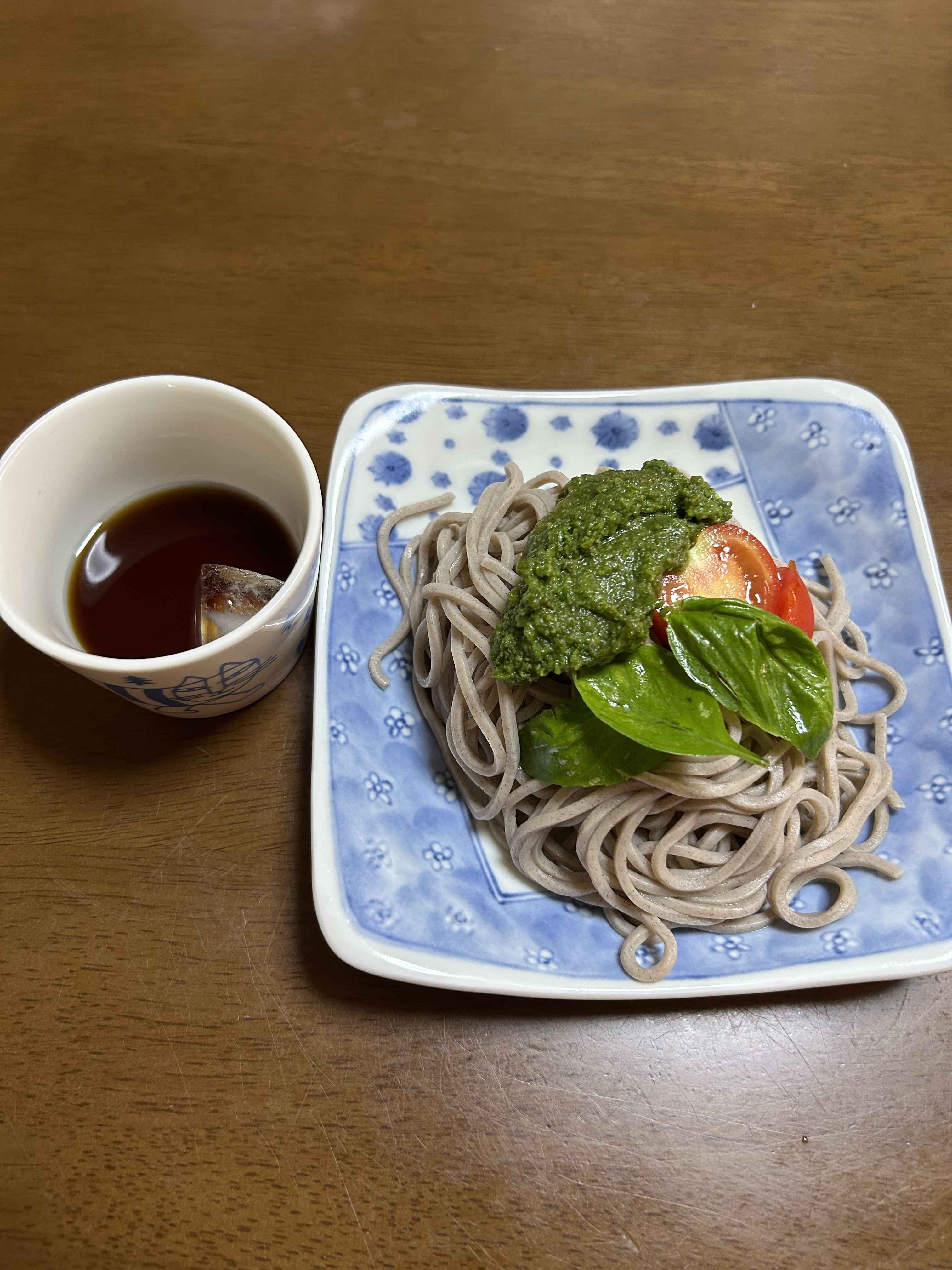 お蕎麦屋さんで、サラダ蕎麦というのがあったので食べてみたのですが、トマト🍅が合っていて美味しかったです。バジルソースもいいですね。