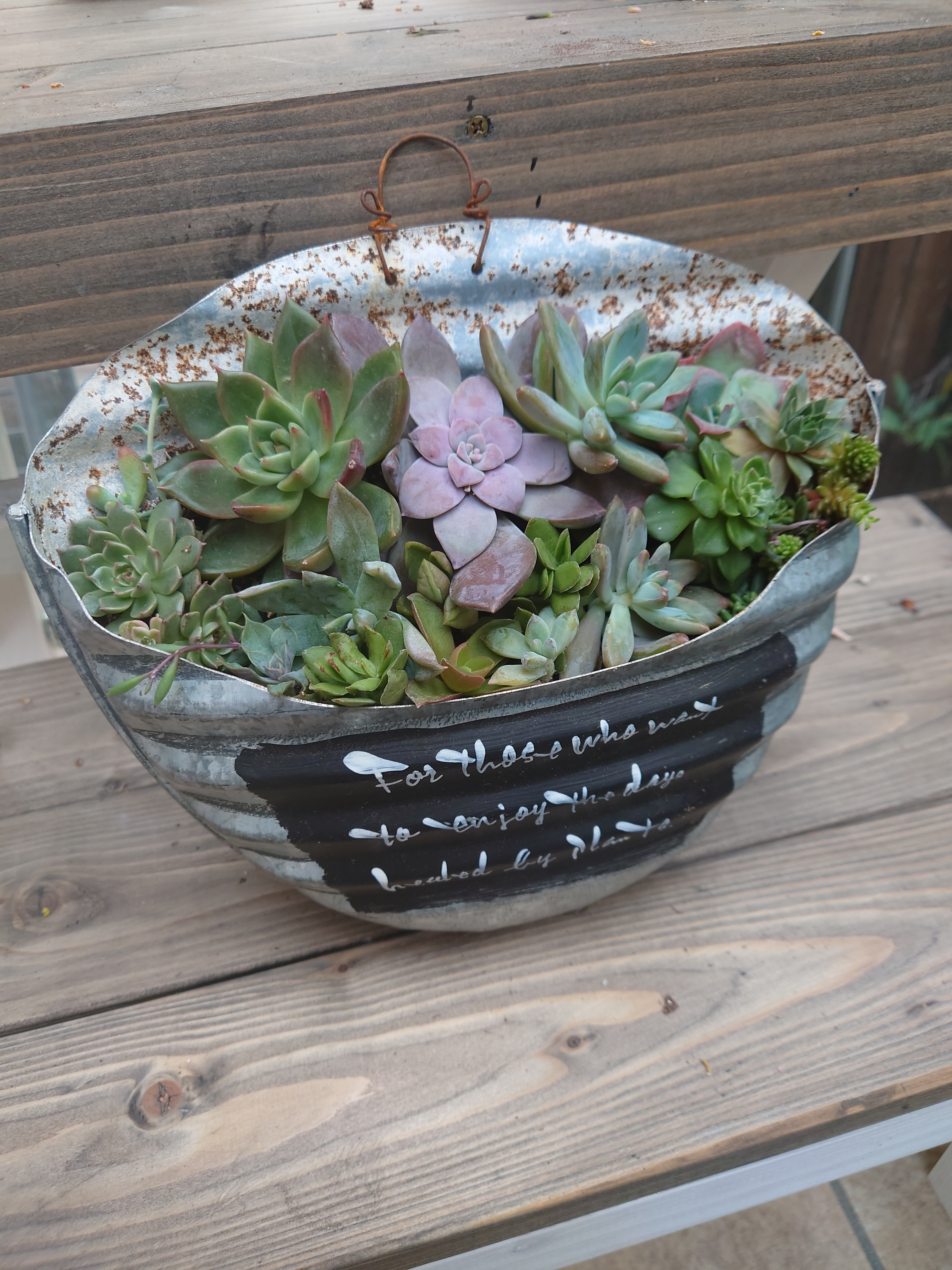 湯たんぽの鉢に多肉の寄せ植え