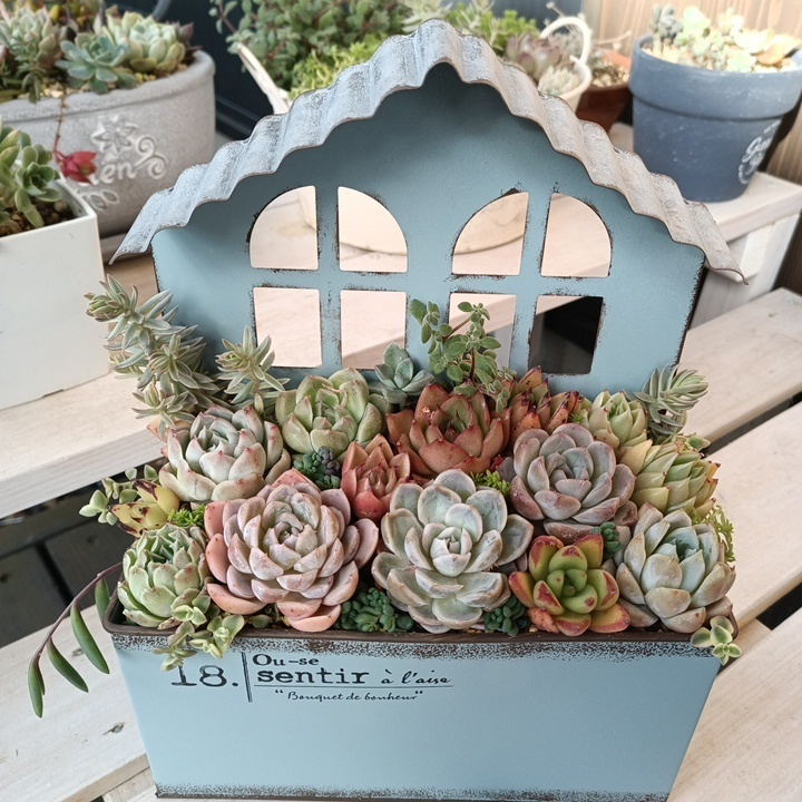 投稿を表示ブリキのプランターがまた多肉の可愛さを引き立ててますね。