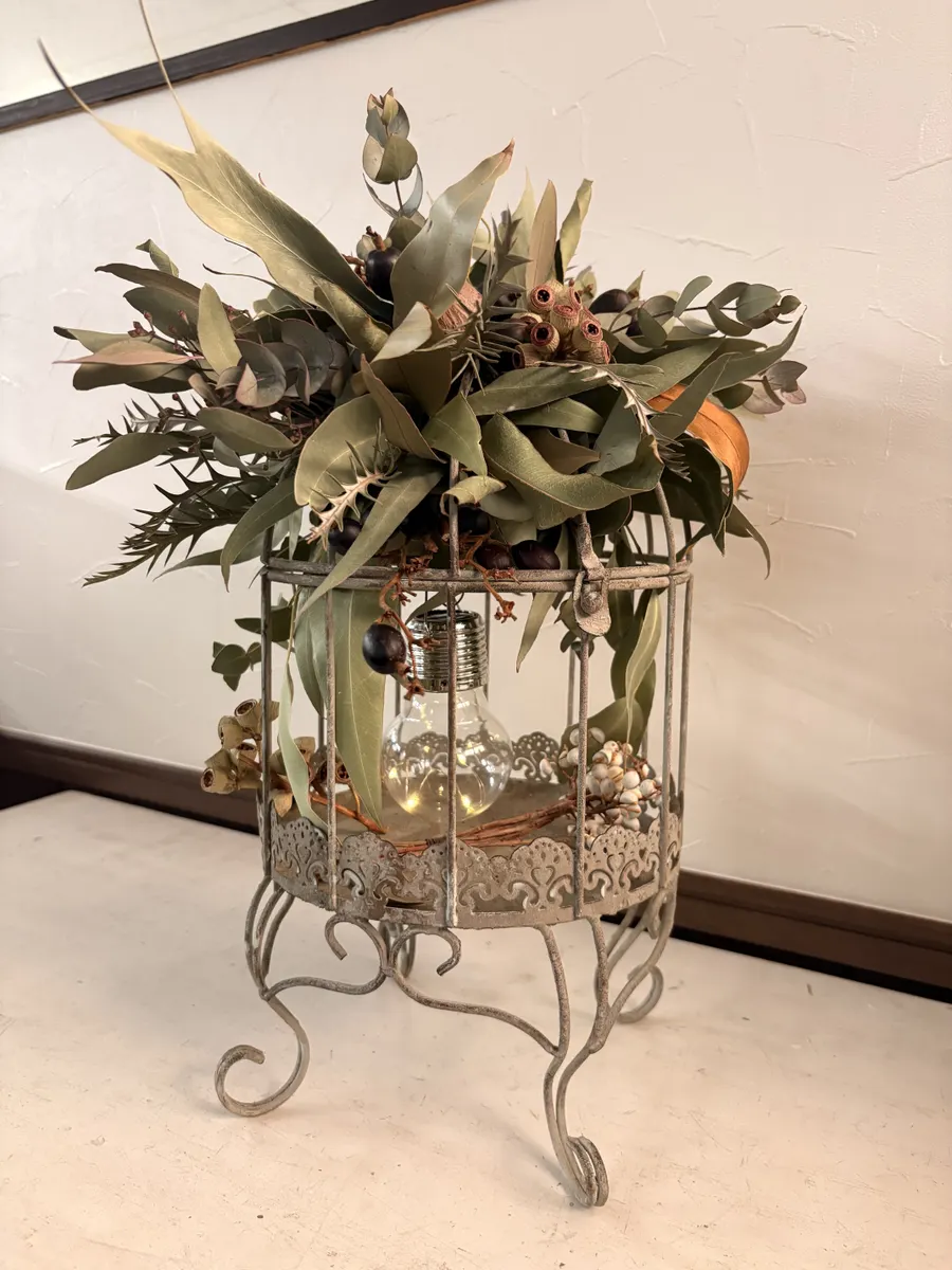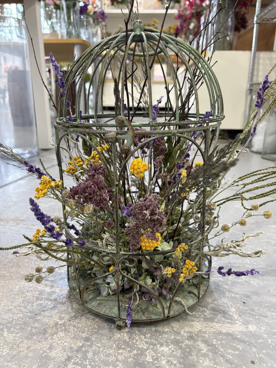 投稿を表示ドライフラワーの鳥カゴアレンジがあるんですね。