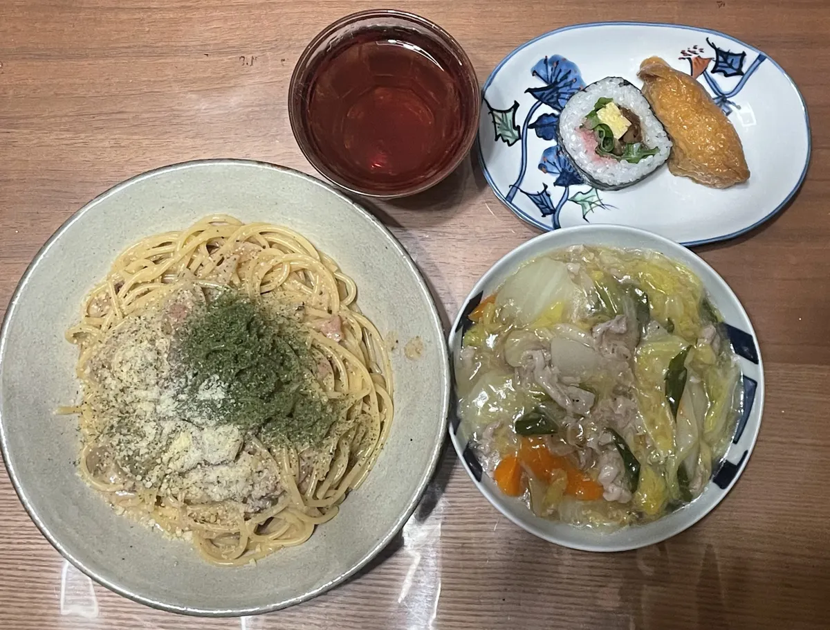 にしても、ベーコンの消費量🤭野菜餡掛け、助六までの量がすげ〰️🤣