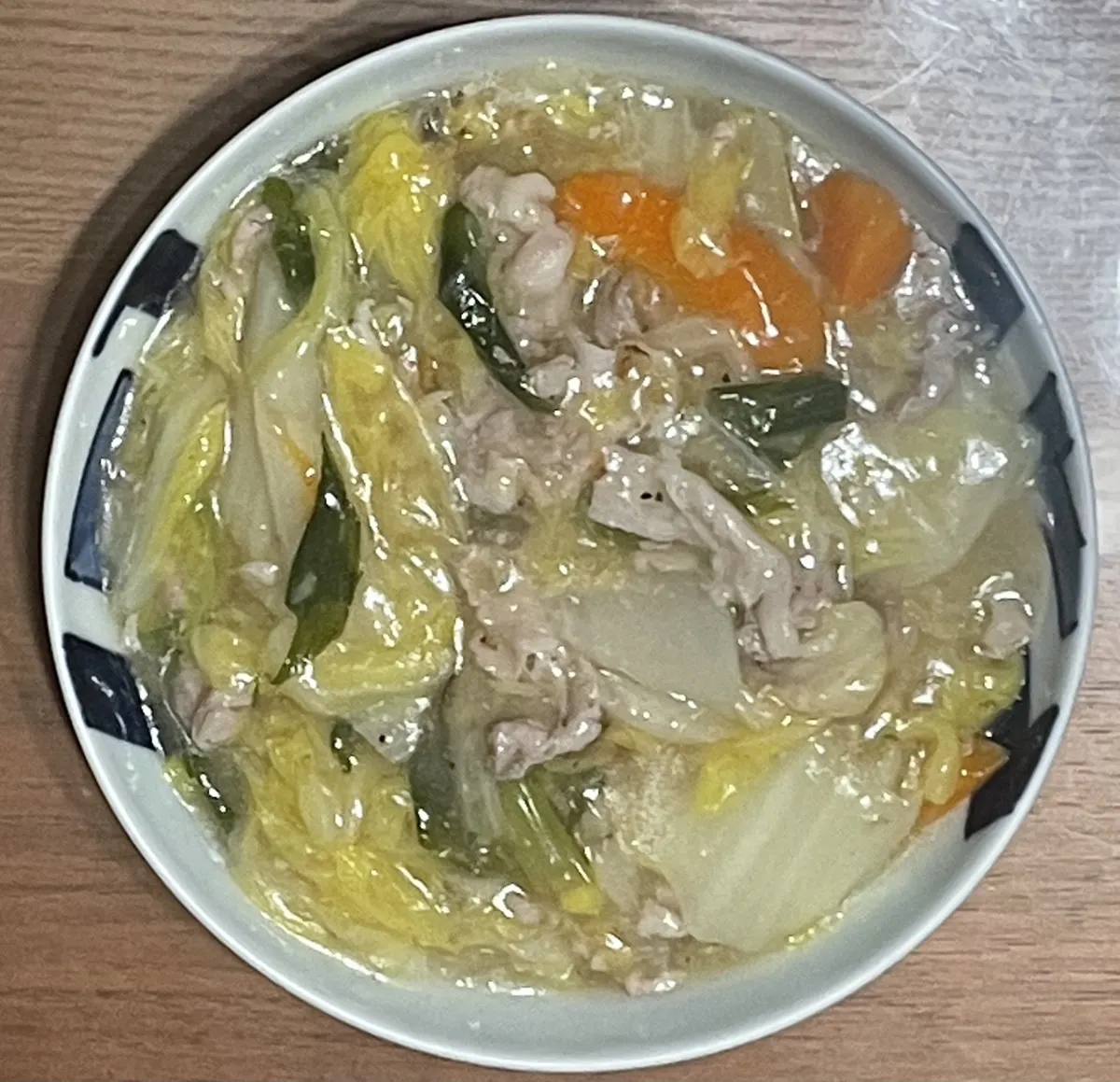 豚バラ・白菜・人参・玉葱・葱青身の餡掛け✨