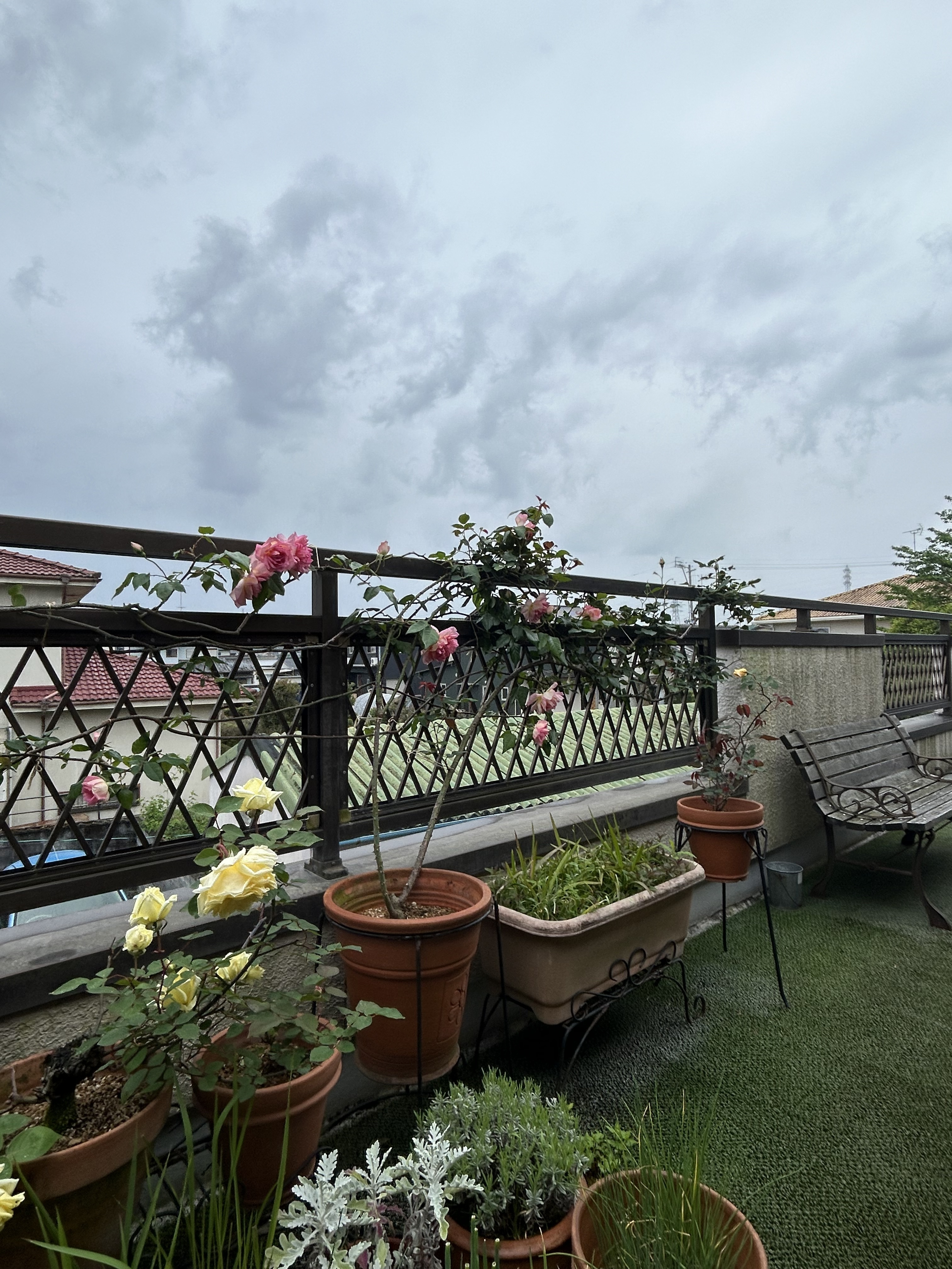 オレンジ色のつるバラですか??またお天気の日に再チャレンジですね!!(うん・・・ベランダとは思えない・・・屋上のような庭園のベランダですね~~すごい・・)