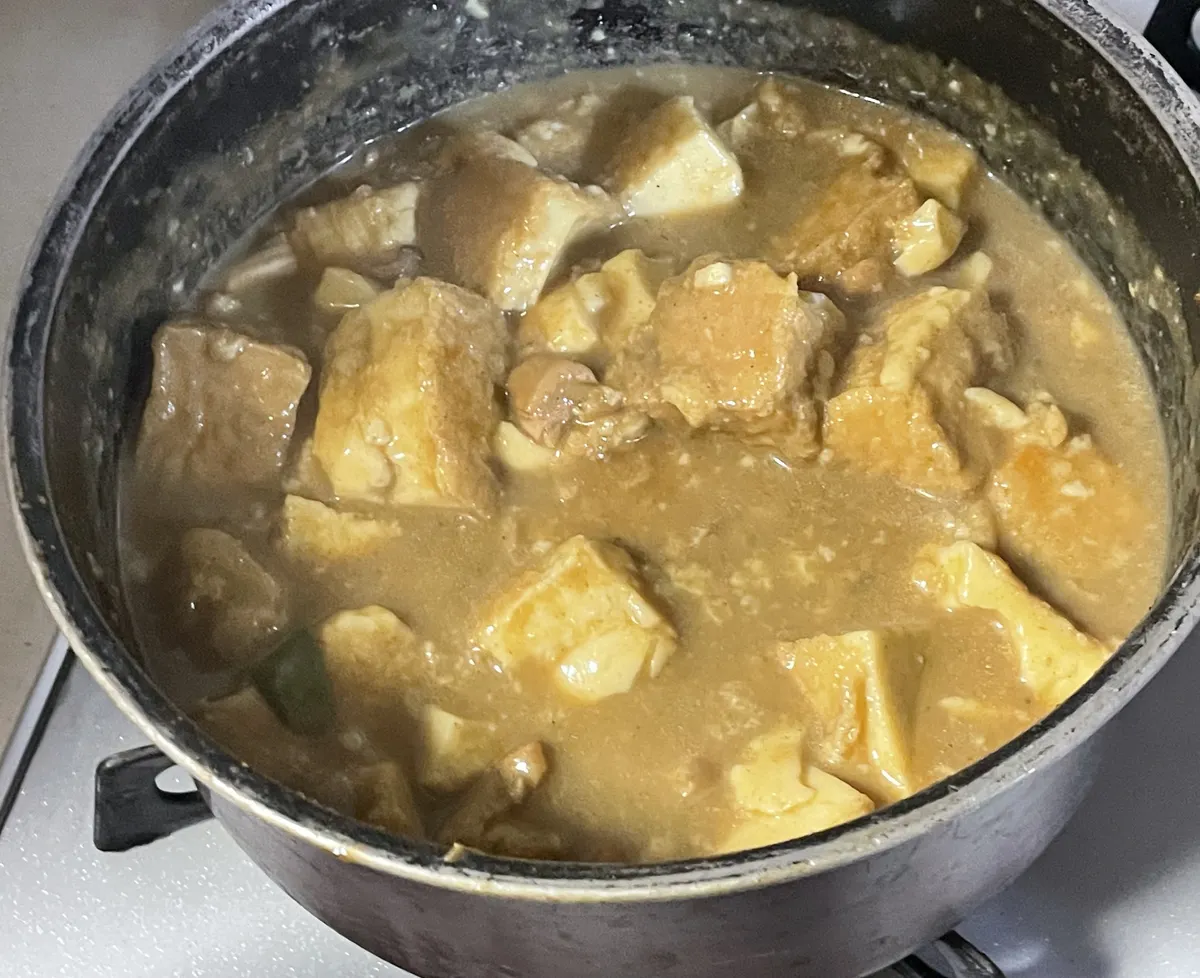 【鶏ももと大根の和風カレーリメイク③「豆乳チーズカレーの厚揚げ煮込み」でフィニッシュっ😆🙌🍛🟨🔚‼️💨✨】
