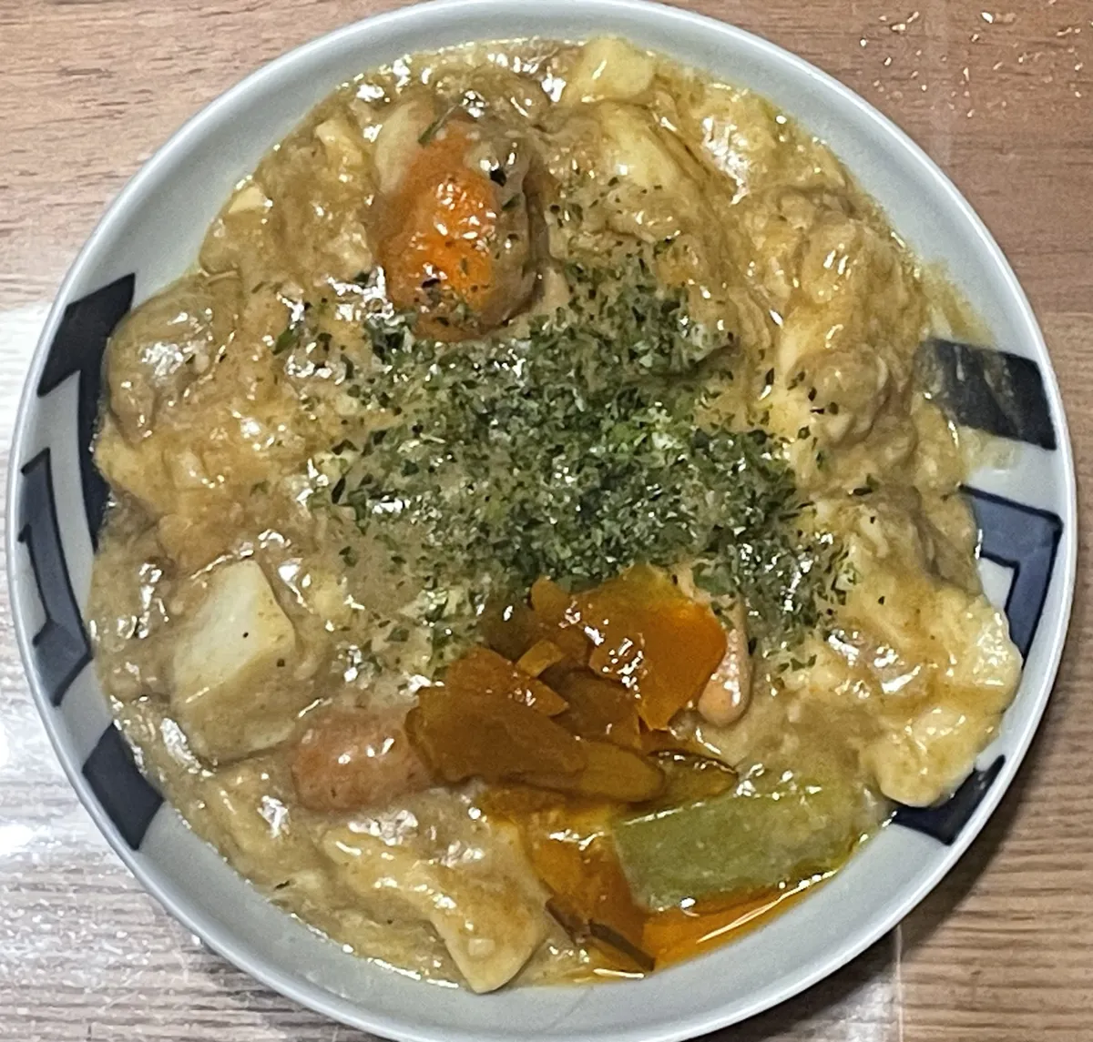 いやぁ〜オリジナルから始まって、4日間に及ぶリメイク飯にリアレンジし倒したが最後はカレー味足らなくなったので麺つゆ・カレー粉・ガラムマサラ追加で味調整🫡💛🤎✨