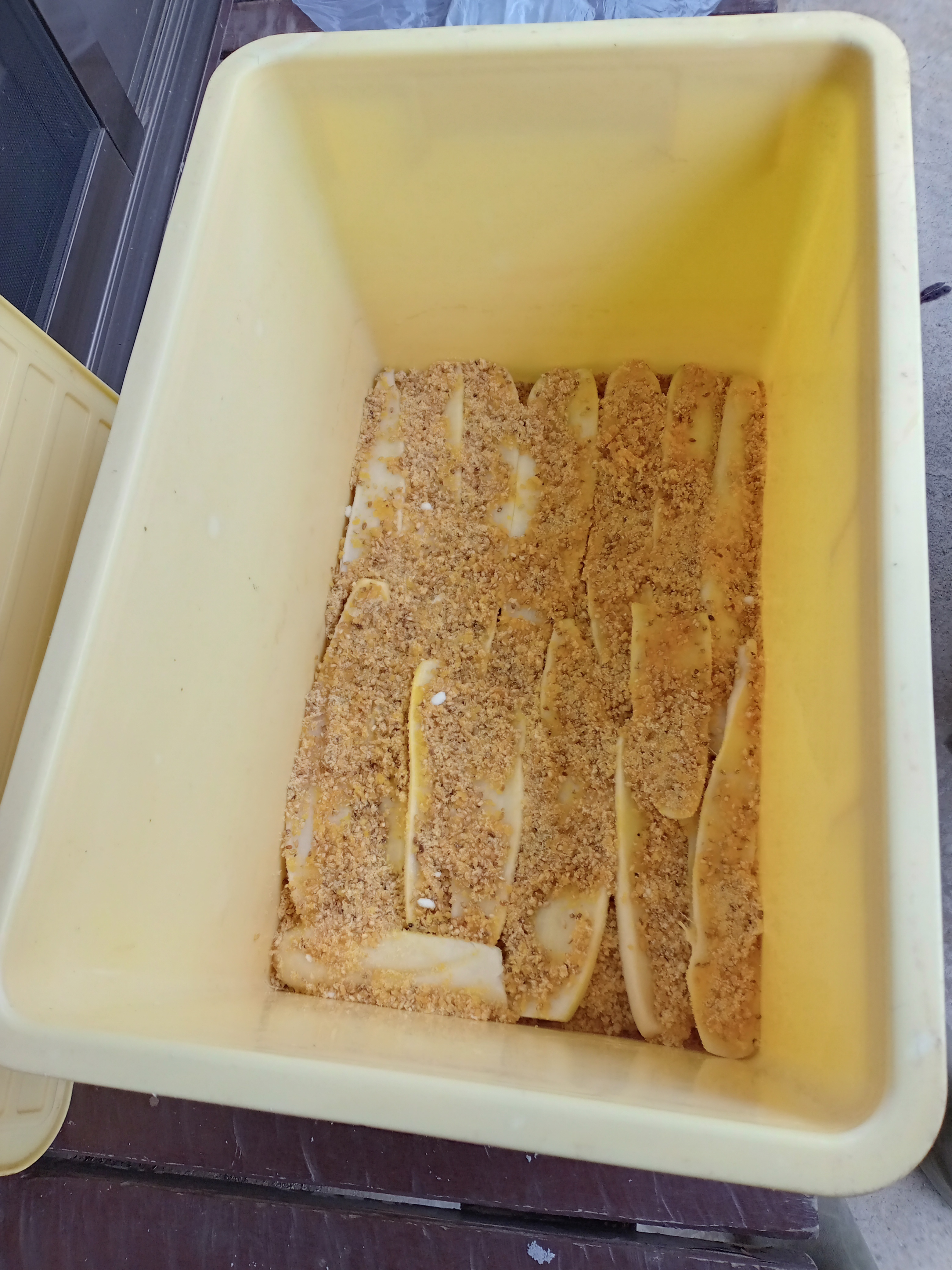トップ > 秋冬家庭菜園2025 > キャンペーン > たくあん本漬け お花畑 2025/12/25 23:47 たくあん本漬け ■育てた野菜 大根 右上から始まり、水が上がったのでザルに上げる水を切る。たくあん漬けの素混ぜて、交互に大根敷き詰めて素もかける、おしぶたして、重しをして重しが下がるまではビニールをかけ蓋して重しで押さえて、来年までつける!( 蓋が閉まらないのでビニールをかけほこりかがはいらないようにしてます) ■エピソード(チャレンジしたきっかけなど) ①大根がおもったよりおおきくならなかったので、4週遅れて食べれるのは来年になりました。 ②義母がなくなってからはじめてのたくあん漬けうまくできるかな たのしく栽培部門_秋冬家庭菜園2025 おいしく調理部門_秋冬家庭菜園2025 はじめてチャレンジ部門_秋冬家庭菜園2025 いいね 共有する 共有する X LINE リンクをコピー コメントする 6 件の返信 (新着順) ミュートしたユーザーの投稿です。 投稿を表示 チコリ 2025/12/29 02:00 たくあん漬けの素があるんですね! 義母様のたくあんの味、再現出来るといいですね😁 いいね 返信する ミュートしたユーザーの投稿です。 投稿を表示 お花畑 2025/12/29 07:02 チコリ 有難う御座います! そうですね… いいね 返信する ミュートしたユーザーの投稿です。 投稿を表示 りお 2025/12/27 16:06 大変な作業です いいね 返信する ミュートしたユーザーの投稿です。 投稿を表示 たまご 2025/12/26 19:17 義母から作ったのをいただき食べるだけすが、寒い中こんなに手間をかけてたくあん作るんですね✨️もっと感謝しないといけませんね😁 美味しくできるといいですね🎵 いいね 返信する ミュートしたユーザーの投稿です。 投稿を表示 ぷぅ 2025/12/26 16:58 すご〜い いいね 返信する ミュートしたユーザーの投稿です。 投稿を表示 toshi 2025/12/26 10:23 これは楽しみですね きっと美味しいの出来ますね😋 いいね 返信する ミュートしたユーザーの投稿です。 投稿を表示 リホ-ム人 2025/12/26 08:38 こんにちは!。お花畑さんと ぬか漬け が並びましたねー。 どちらも 眺めていると、田舎独特(ぬか漬け)の匂いを感じますね~。(笑) いいね 返信する ミュートしたユーザーの投稿です。 投稿を表示 お花畑 2025/12/26 16:06 リホ-ム人 糠ではなくて麹なので、甘くて、売ってるやつで言えば東京たくあんの味です。 いいね 返信する ミュートしたユーザーの投稿です。 投稿を表示 リホ-ム人 2025/12/26 16:35 お花畑 沢庵買った記憶ないので、、。大根を干さずに作る、味は 糖しぼり大根に近いですか?。奥が深くて解りません。 いいね 返信する ミュートしたユーザーの投稿です。 投稿を表示 ぷぅ 2025/12/26 16:59 お花畑 わ、こうじなんですね❤️ いいね 返信する