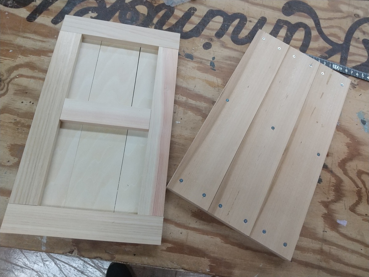 トップ > DIY > インテリア > 【掛け金具を使ったとびら付き窓 】 みんと 2022/08/16 20:01 【掛け金具を使ったとびら付き窓 】 またまたホームでWS。 材料はこんな感じ。苦手なボンドも…。ここでボンドを使用。ボンドで止めた後ろに板をビス留め。黒板塗料はピーコックブルー?(だったかな?)扉はステインのエボニーブラックです。黒板の板の縁を付けてから、壁に掛ける金具、蝶番、扉の金具の3点を取り付けて完成です。今日もご一緒した方、アドバイザーさん、ありがとうございました。 いいね 共有する 共有する X LINE リンクをコピー コメントする 5 件の返信 (新着順) ミュートしたユーザーの投稿です。 投稿を表示 ぷりぶり 2022/08/19 10:15 みんとさん ブルーが爽やかで素敵です〰️😍💕 エボニーブラックはまだ使ったことがないのですが、カッコいいですよね🥰✨ いいね 返信する ミュートしたユーザーの投稿です。 投稿を表示 みんと 2022/08/20 07:57 ぷりぶりさん、ありがとうございます。 エボニーは男前に仕上がるので、機会があったら使ってみてくださいね🎵 いいね 返信する ミュートしたユーザーの投稿です。 投稿を表示 べるん 2022/08/17 09:44 とっても素敵なコンビネーションですね✨ ブルーの黒板が可愛らしくて気分もあがりました😍 いいね 返信する ミュートしたユーザーの投稿です。 投稿を表示 みんと 2022/08/17 13:29 べるんさん、ありがとうございます。 エボニーはちょっとシックにまとまりすぎたかな?と思っていましたが、そう言っていただけて嬉しいです🎵 いいね 返信する ミュートしたユーザーの投稿です。 投稿を表示 花*花 2022/08/16 23:28 はっきりした色合い!良いですね🎵ブルーがキレイ🥰 私も来週作ってきます😆 いいね 返信する ミュートしたユーザーの投稿です。 投稿を表示 みんと 2022/08/17 13:27 花花さんも来週作るんですね🎵 黒板塗料は3色から選べました。 花花さんはきっと爽やかな仕上がりになりそうですね✨ いいね 返信する ミュートしたユーザーの投稿です。 投稿を表示 花*花 2022/08/17 18:24 まだ予約出来たので、行けそうだなぁと思って昨日予約したんです。みんとさん、正解!白系の扉にする予定です🥰 いいね 返信する ミュートしたユーザーの投稿です。 投稿を表示 マッキー 2022/08/16 22:36 みんとさん こんばんは。 エボニーブラックの扉を開けたら🚪ブルーがこんにちは。👍 キレイなブルーですね。🥰💕 チョークは何色を置いとくのかなぁー😊✨ いいね 返信する ミュートしたユーザーの投稿です。 投稿を表示 みんと 2022/08/17 13:26 マッキーさん、そうだ まだチョークがないんでした。 やっぱりホワイトが一番、引き立ちそうですね。 いいね 返信する ミュートしたユーザーの投稿です。 投稿を表示 Toko 2022/08/16 20:37 窓を開けたら青空が見える! どこに置くのかな?楽しみですね。 いいね 返信する ミュートしたユーザーの投稿です。 投稿を表示 みんと 2022/08/17 13:25 Tokoさん、ありがとうございます。 私にしては爽やかなカラーになりました。 玄関に置くか?廊下か?悩みますね。 いいね 返信する