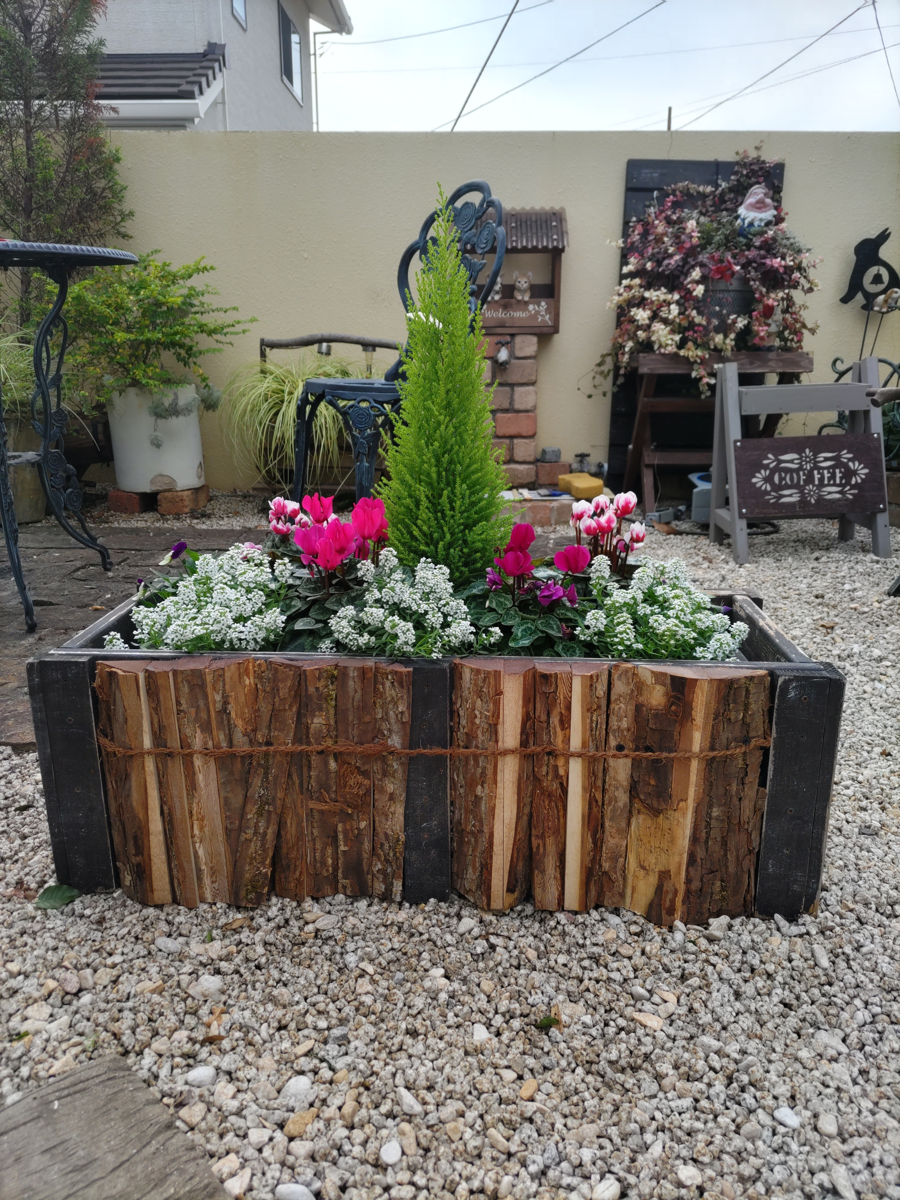 確か2021年の作品で〜す。もうWSに通うのが楽しくて楽しくて仕方のない頃でした 。大物が作れる嬉しさで前夜は眠れませんでした。出来上がったらプランターに寄植えして何処に飾ろうか…我が家の前を通る人に見えるところがいいなぁ、そんな事を考えながら作ったものです。今では塗り替えられたり、ステンシルされたり、年期が入って、それでも丈夫ですね🩷。まだまだ使えます。先日、道の駅でバーベキュー用の薪に如何ですかって売られていた物ですが、なにかに使えないかと思い購入しました。帰ってきてひらめきました。そうだ・プランターに貼り付けたらどうだろう…考えるのと実行は難しいで〜〜す。四苦八苦で頑張りました。見てやってくださいね😊。