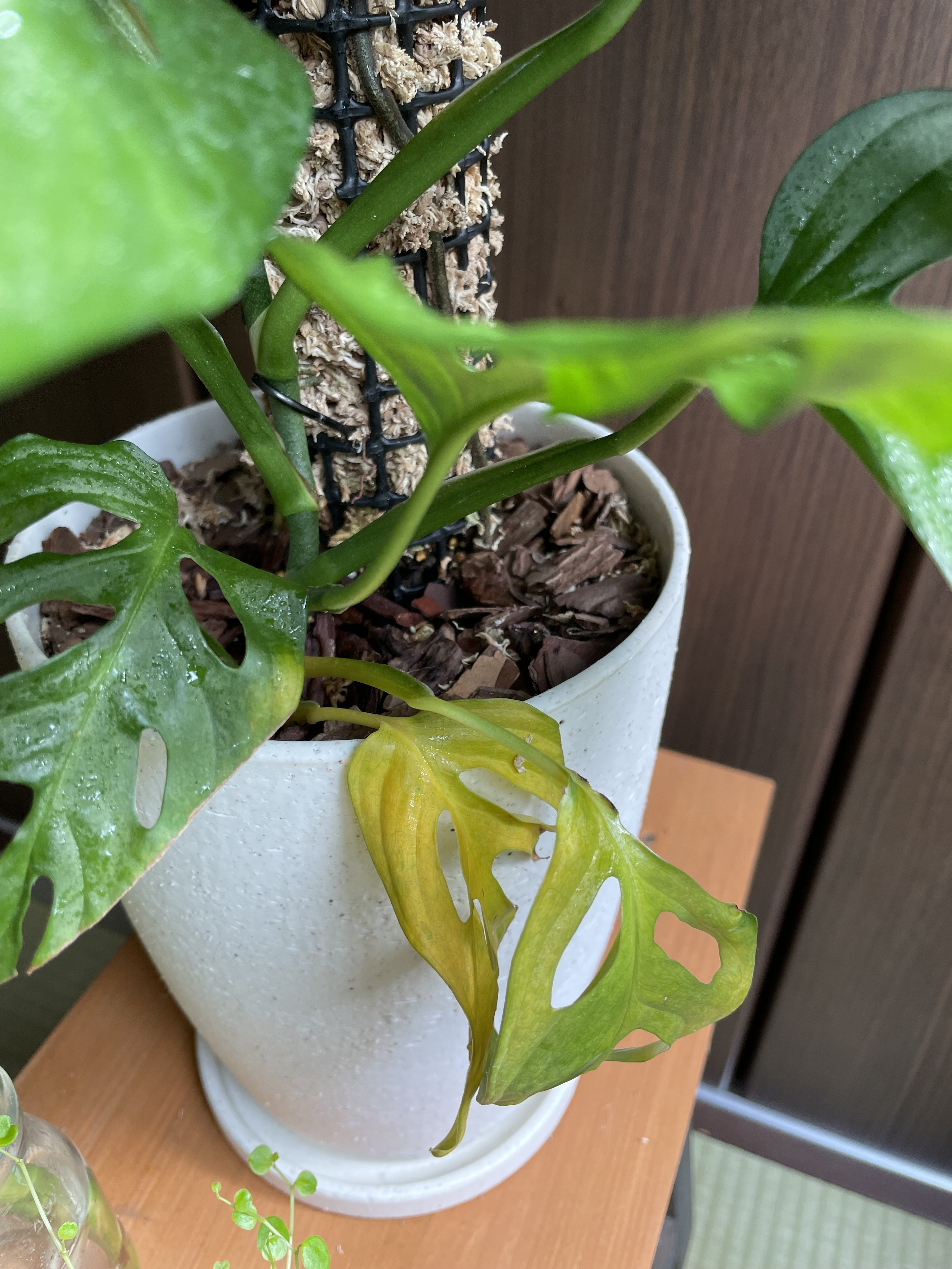 投稿を表示我が家のモンステラも同じような感じです。私も黄色い葉を落としますね✂️